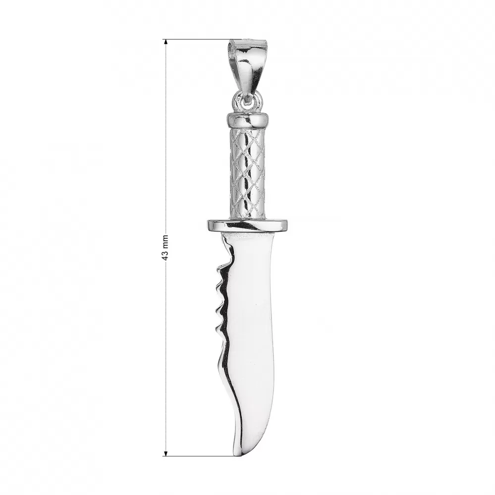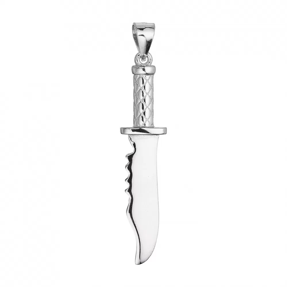 Stříbrný přívěsek ve tvaru nože je stylový a výrazný doplněk pro milovníky nožů, dobrodružství nebo bojových umění. Jeho detailní provedení zachycuje elegantní tvar čepele a rukojeti, čímž vytváří autentický vzhled realistickém stylu. Tento přívěsek je nejen módním doplňkem, ale také symbolizuje sílu, odvahu a připravenost. Díky stříbrnému materiálu je nadčasový a snadno se kombinuje s různými šperky, hodí se pro každodenní nošení i jako originální dárek.