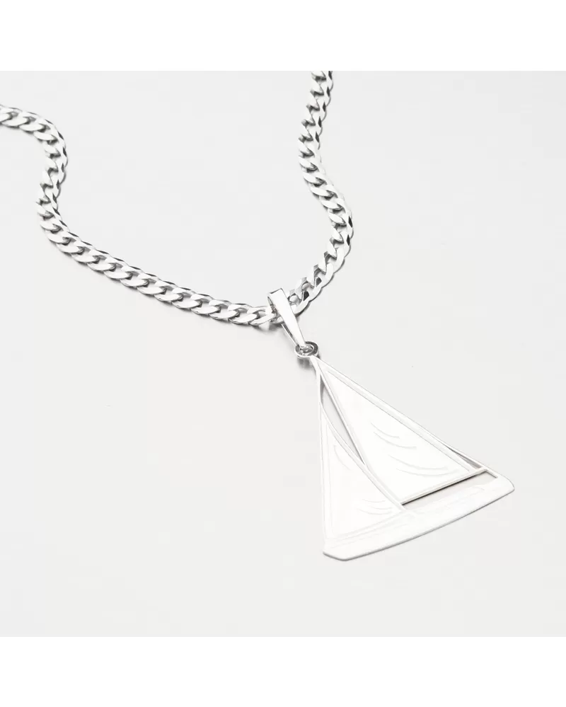 Stříbrný námořnický přívěsek ve tvaru plachetnice. Ideální šperk pro milovníky vodáckého sportu. Přívěsek je do detailu propracovaný, aby co nejlépe vykreslil motiv plachetnice a to za pomocí rýh a sametového matu.