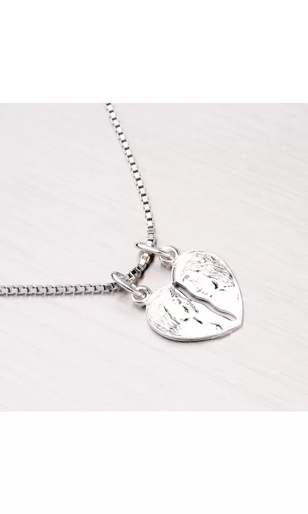 Romantická sada přívěsků pro pár ve tvaru srdce je vyrobena z rhodiovaného stříbra ryzosti 925/1000 v lesklé povrchové úpravě. Přívěsek zdobí jemné ruční gravírování. Rozlomením docílíte dvou identických přívěsků.