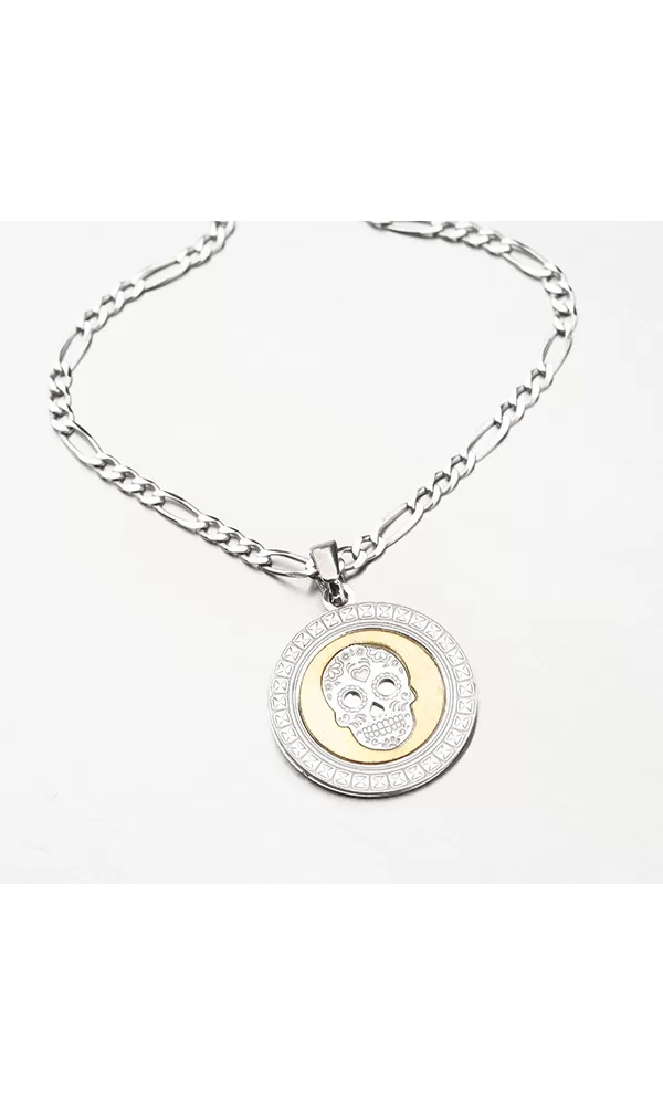 Originální přívěsek se symbolem lebky. Přívěsek je kulatý a ve středu má vyobrazenou lebku. Poté kolem ní je povrch pozlacen technikou PVD v barvě žlutého zlata. Předností zlacení technologií PVD je vysoká tvrdost a odolnost proti otěru! Jedná se o silnou vrstvu, která proniká do původního materiálu. Zlacení technologií PVD se dá srovnat s přibližně 6 mikrony galvanického zlacení, což je vysoká hodnota, která při běžném nošení vydrží až několik let.
