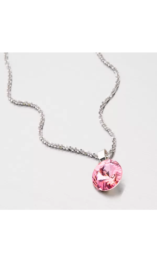 Přívěsek je vyroben ze stříbra ryzosti 925/1000 a je doplněn růžovým krystalem v lesklé povrchové úpravě.
