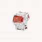 Originální přívěsek s průvlekem je zdoben precizně broušenými kubickými zirkony v oranžové a bílé barvě. Šperk je vyroben z rhodiovaného stříbra ryzosti 925/1000. Rhodium je ušlechtilý drahý kov ze skupiny platinových kovů. Rhodiováním stříbrných prstenů galvanickým nanášením tohoto drahého kovu se stává povrch šperku tvrdší, stálejší a odolnější vůči vnějším vlivům jako je mechanický otěr, poškrábání, nabíhání stříbra, lidský pot, kosmetické přípravky a další. Rhodium je antialergické.Přívěsek lze umístit na řetízek nebo náramek a vytvořit tak osobitý šperk.