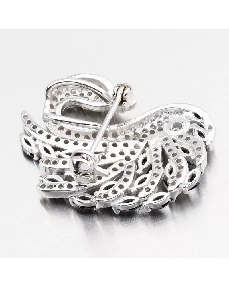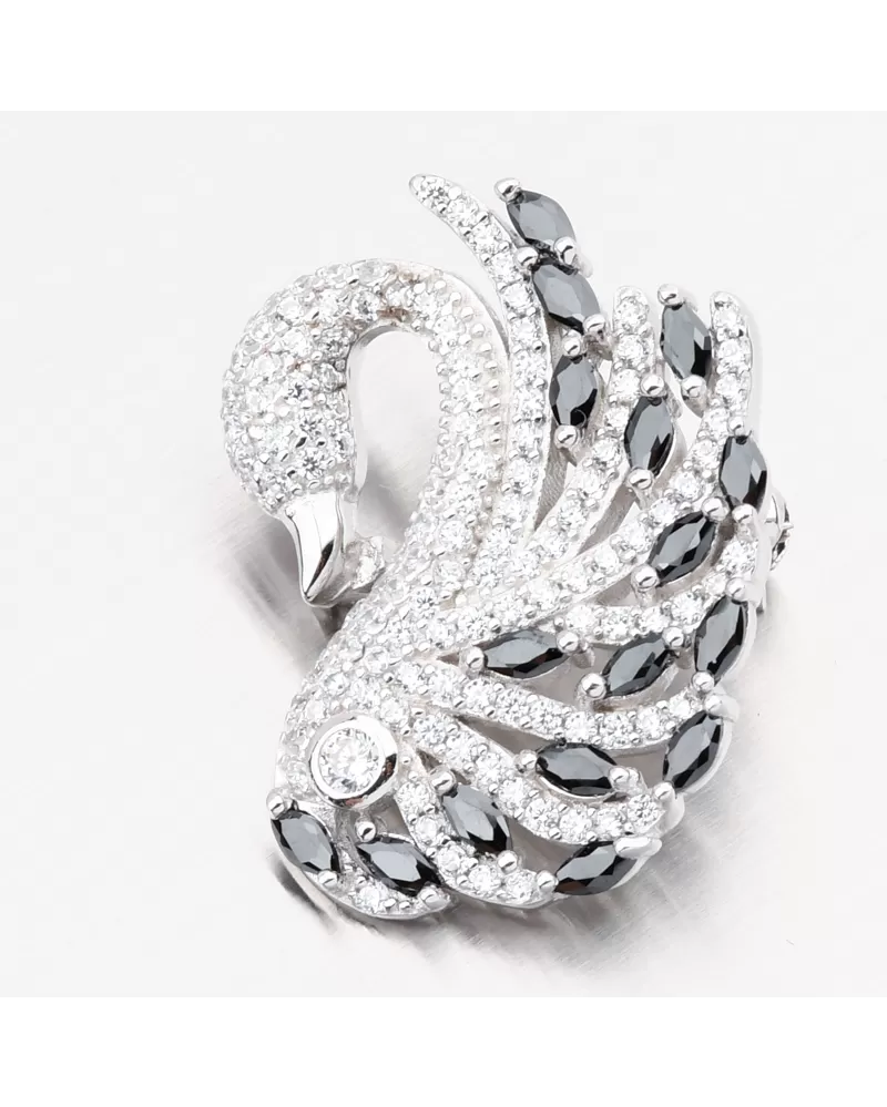 Tato brož s motivem labutě bude originálním a krásným dárkem pro Vaší milovanou osobu. Brož rozhodně nepatří jen do výbavy našich babiček, je totiž velmi oblíbeným šperkem současné doby. Tento šperk je povinnou výbavu šperkovnice mladých i starších manažerek, ale také žen, které se prostě jen rády líbí. Šperk je osazený zářivými zirkony bílé barvy v briliantovém brusu a tuto nádheru ještě navíc zvednou černé zirkony, které jsou oválného tvaru. Labuť je symbolem krásy, věrnosti nebo třeba nevinnosti.