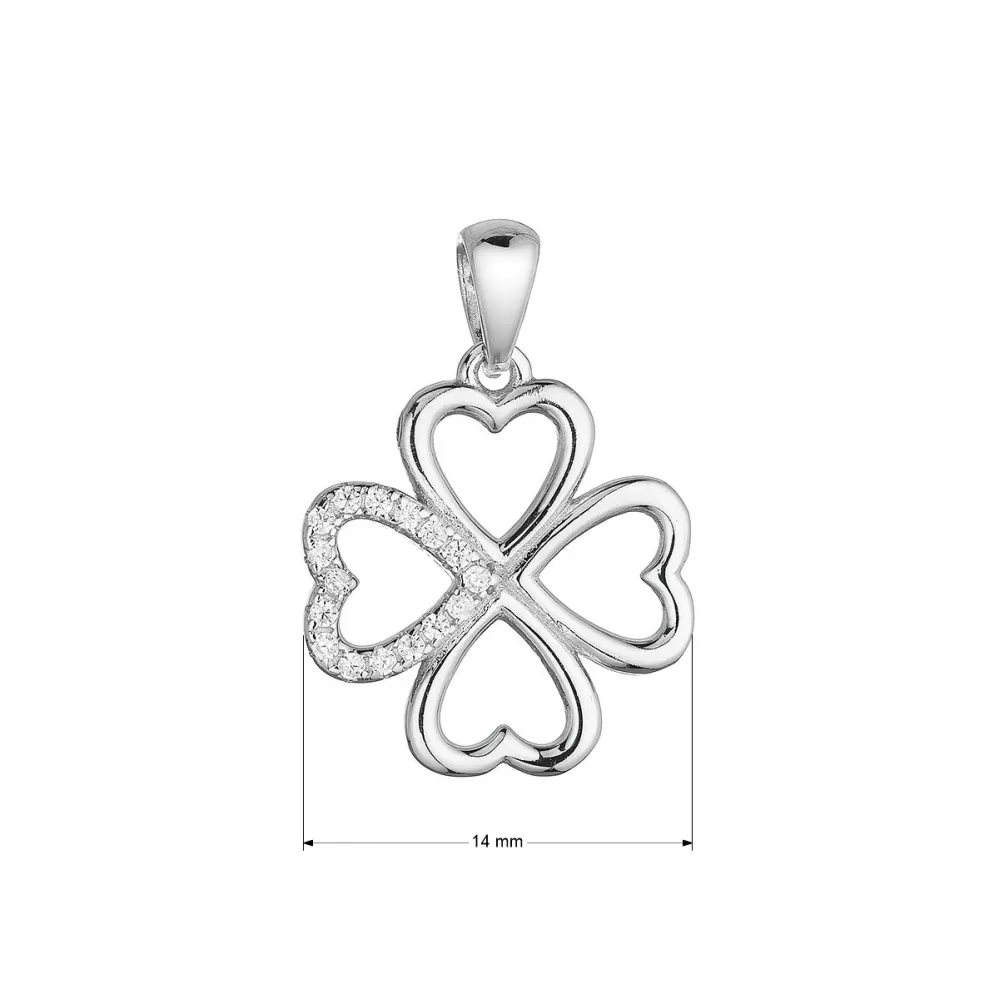 Design čtyřlístku je rafinovaně sestaven ze čtyř propojených srdíček. Jeden z lístků (srdíček) je navíc vkusně osázen třpytivými čirými zirkony, které dodávají celému šperku jiskru a punc luxusu. Toto detailní zpracování podtrhuje jedinečnost a půvab přívěsku.