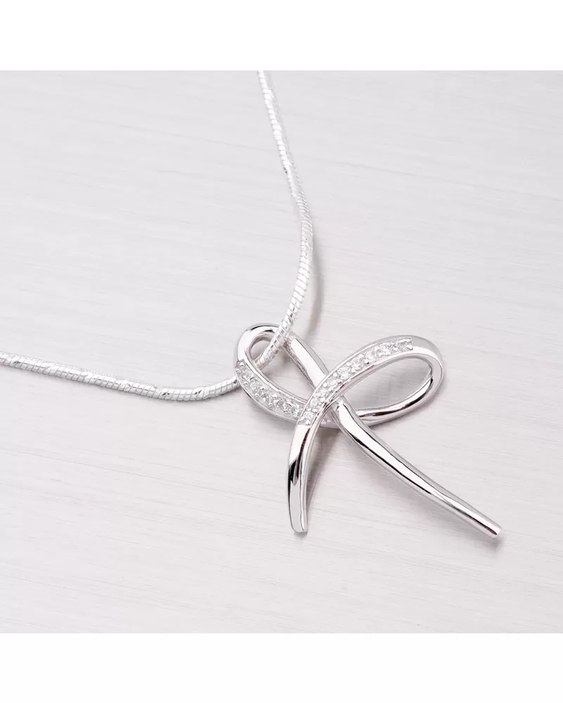 Přívěsek s bílými zirkony je vyroben ze stříbra ryzosti 925/1000 v lesklé úpravě s rhodiováním. K přívěsku je vhodné použít řetízek o max. průměru 3,00 mm.