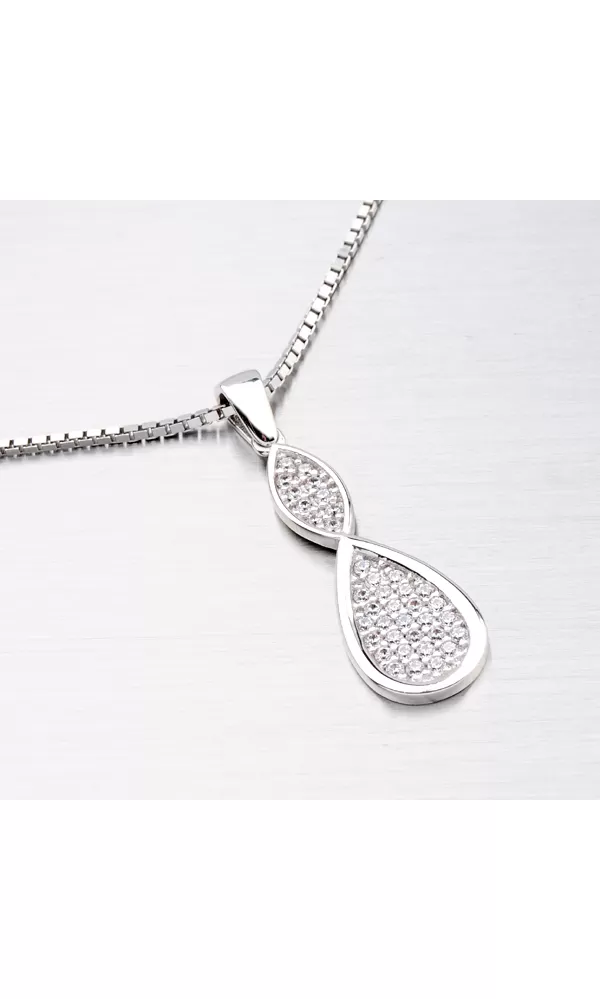 Krásný přívěsek v zajímavém designu je vyroben v lesklé povrchové úpravě a zdoben je zářivými zirkony v kulatém brusu. Přívěsek se bude vyjímat ve vašem dekoltu.