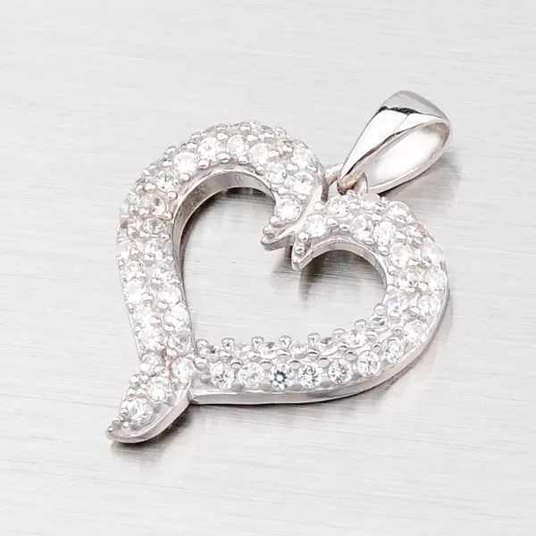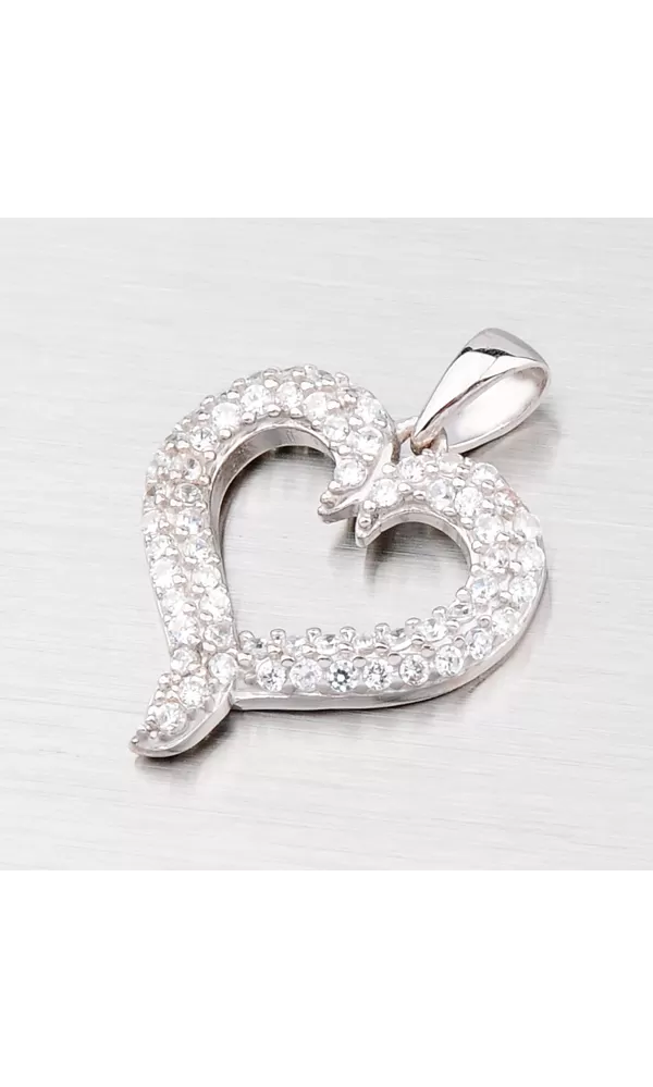 Krásný přívěsek ve tvaru srdce je vyroben ze stříbra ryzosti 925/1000. Přívěsek je vyroben v lesklé povrchové úpravě a je ozdoben bílými drobnými zirkony, které jsou do šperky zasazeny technikou microsetting. K tomuto přívěsku je vhodné použít řetízek o průměru max. 2,25 mm.