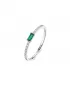 Elegantní prsten představuje stylový a současně jemný doplněk pro ženu s vytříbeným vkusem. Prsten je osázen čirými kubickými zirkony a jedním obdélníkovým zirkonem v zelené barvě, který obepíná horní obvod prstenu a vytváří jemný ale výrazný barevný akcent. Design prstenu je ideální pro ženy, které hledají univerzální doplněk.