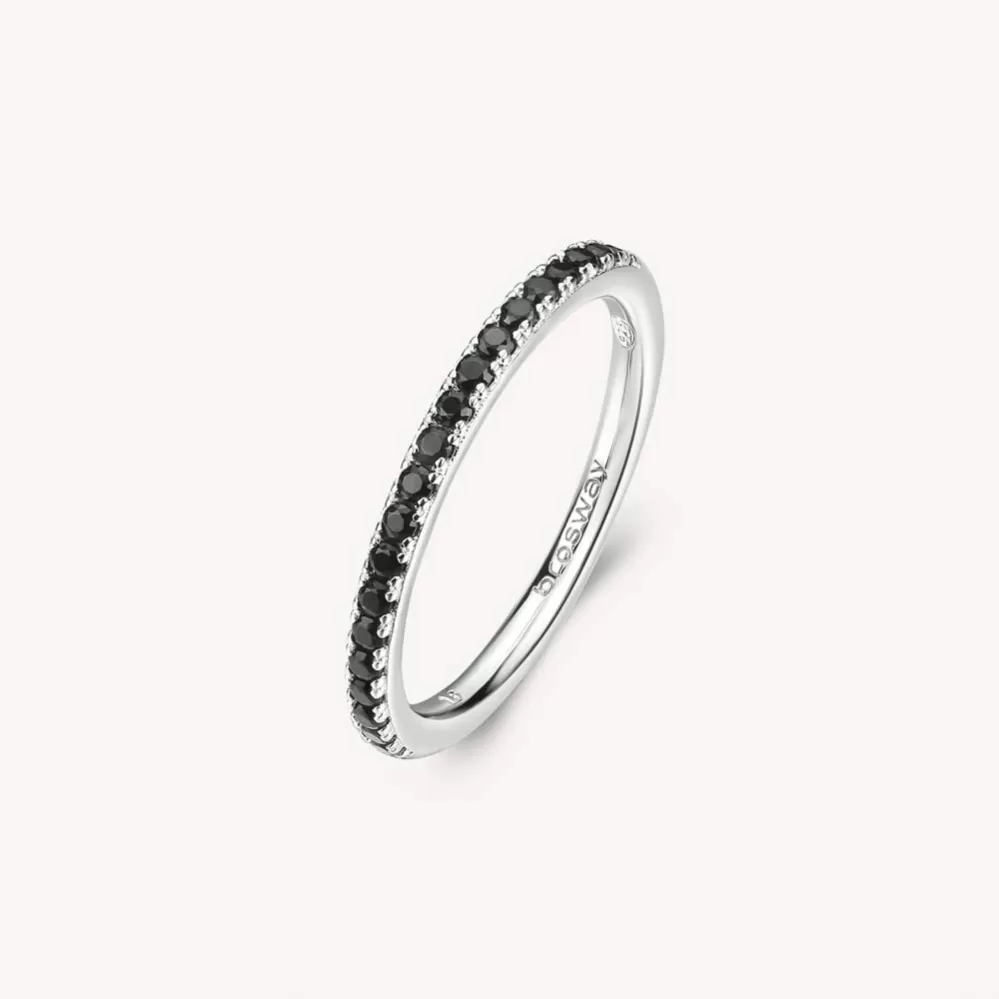 Decentní, dámský prsten je vyroben ze stříbra ryzosti 925/1000, které je zušlechtěno rhodiováním.. Rhodium je ušlechtilý drahý kov ze skupiny platinových kovů. Rhodiováním stříbrných prstenů galvanickým nanášením tohoto drahého kovu se stává povrch šperku tvrdší, stálejší a odolnější vůči vnějším vlivům jako je mechanický otěr, poškrábání, nabíhání stříbra, lidský pot, kosmetické přípravky a další. Rhodium je antialergické. Stříbrný prsten je zdoben prvotřídními z zirkony, které jsou precizně vsazeny jeden vedle druhého.