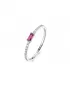 Elegantní prsten představuje stylový a současně jemný doplněk pro ženu s vytříbeným vkusem. Prsten je osázen čirými kubickými zirkony a jedním obdélníkovým zirkonem v rubínové barvě, který obepíná horní obvod prstenu a vytváří jemný ale výrazný barevný akcent. Design prstenu je ideální pro ženy, které hledají univerzální doplněk.
