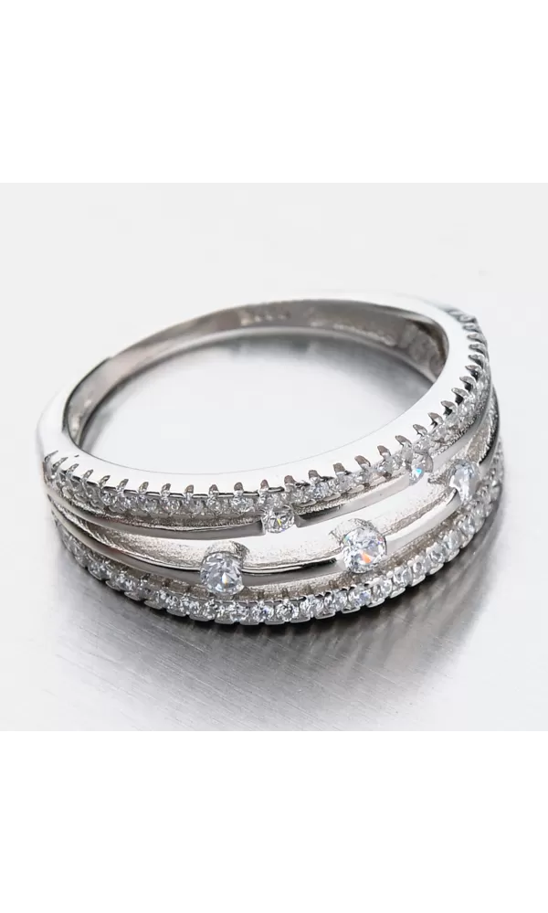 Milujete zářivé kameny? Tento prsten je jimi bohatě zdoben.Zirkony jsou vsazeny ve dvou linii těsně vedle sebe a také sem tam uprostřed. Udělejte si radost nebo jí udělejte někomu jiném. Prsten máme skoro ve všech velikostí.