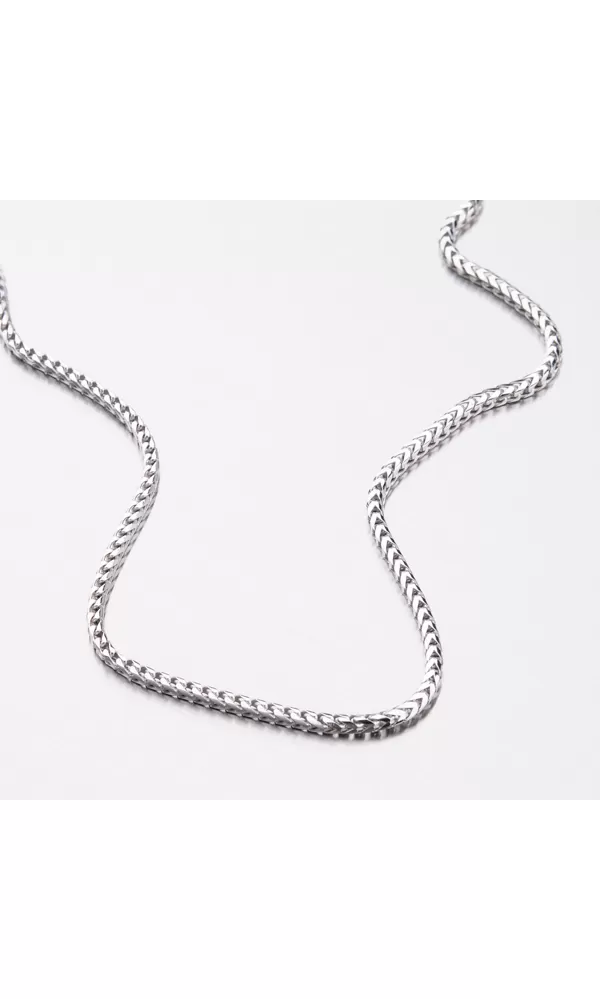 Tento řetízek je vyrobený ze stříbra o ryzosti 925/1000 ve '3D' provedení, které zaručuje jeho plastičnost na vašem krku. Řetízek má díky tvarům oček na každé hraně jiné opakující se tvary a tak můžete jeho vzhled střídat podle nálady. Pro vysokou odolnost řetízku je jeho povrch zušlechtěn rhodiováním. Rhodium je ušlechtilý drahý kov ze skupiny platinových kovů. Rhodiováním stříbrných šperků galvanickým nanášením tohoto drahého kovu se stává povrch šperku tvrdší, stálejší a odolnější vůči vnějším vlivům jako je mechanický otěr, poškrábání, nabíhání stříbra, lidský pot, kosmetické přípravky a další. Rhodium je antialergické.