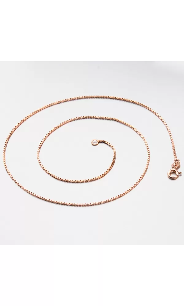 Růžovým zlatem pozlacený řetízek typu Venezia - kostičky je vyroben ze stříbrna ryzosti 925/1000 v lesklé povrchové úpravě se zapínáním na pérový kroužek.  Facety řetízku - lesklé plošky, jsou zhotoveny diamantovým nástrojem, který dodává vzniklým facetám maximální lesk, díky kterému dokonale odráží světlo a mají krásnou brilanci ze všech úhlů pohledu!