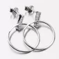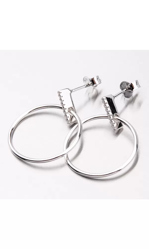 Moderní dámské náušnice potěší nejen ženy ale i dívky. Jsou tvořeny proužkem stříbra, který je celý osázen zirkony v briliantovém brusu. Z proužku visí stříbrný kruh  v jednoduchém designu, leštěn do vysokého lesku. Náušnice se zapínají na puzetu.