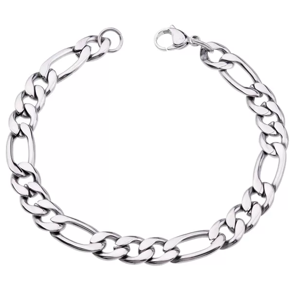 Silný náramek z oceli typu Figaro 3+1 s klasickým zapínáním na karabinu a je vyroben v lesklé povrchové úpravě. Chirurgická ocel vyniká svou barevnou stálostí a nezpůsobuje alergické reakce.