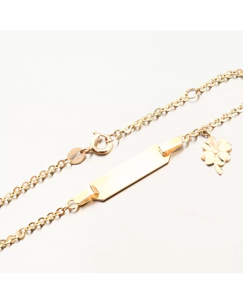 Dětský náramek žluté zlato 585 s destičkou a čtyřlístkem 144P-141312
