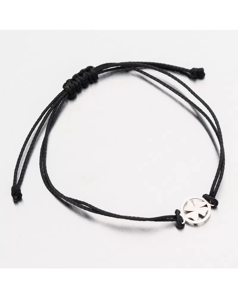 Velmi oblíbený typ provázkového náramku, který má výhodu ve své univerzální velikosti a oblíbené černo-bílé kombinaci barev. Náramek je tvořen z černého dvojitého provázku s kulatým přívěskem, uvnitř kterého se ukrývá symbol čtyřlístku. Tento nadčasový motiv přináší štěstí, harmonii a ochranu. Minimalistický doplněk s hlubokým významem, který potěší jako osobní talisman i jako výjimečný dárek.