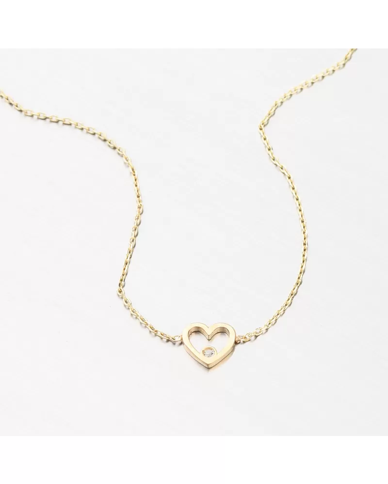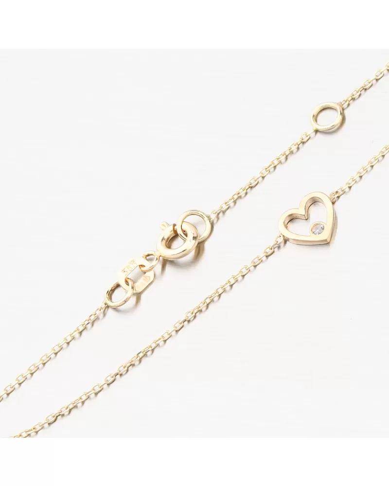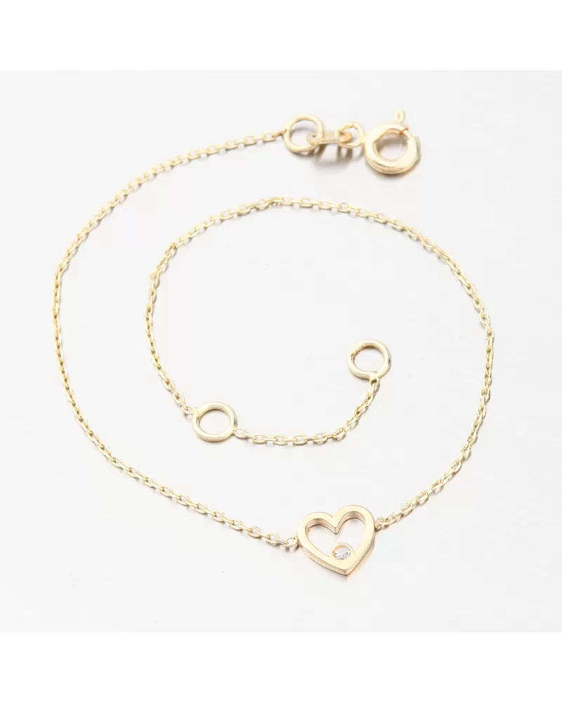Jemný zlatý náramek, který má v samotném středu roztomilé srdce a v něm je usazen jeden zářivý zirkon. Zirkon je s briliantovým brusem Signity star, který dodává zirkonu maximální brilanci.