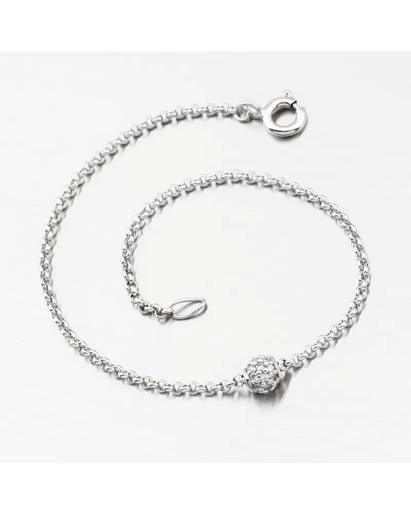 Jemný náramek z bílého zlata je tvořen velmi pohodlným řetízkem a decentním přívěskem ve tvaru kuličky. Kulička je precizně osázena zirkony v briliantovém brusu. Briliantový brus dodává zirkonům třpyt pravých diamantů. Náramek je velmi příjemný vhodný pro každodenní nošení. Délka náramku je 16 cm, ale s využitím řetízku dlouhého 2 cm, je možné náramek zapnout libovolně v délce 16 až 18 cm. Nastavitelná délka má úžasnou výhodu v tom, že nemusíte znát přesnou velikost a darovaná osoba si délku přizpůsobí sama. Zapínání je na pérový kroužek.