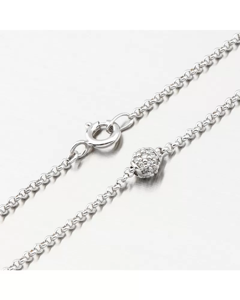 Jemný náramek z bílého zlata je tvořen velmi pohodlným řetízkem a decentním přívěskem ve tvaru kuličky. Kulička je precizně osázena zirkony v… Celý popis