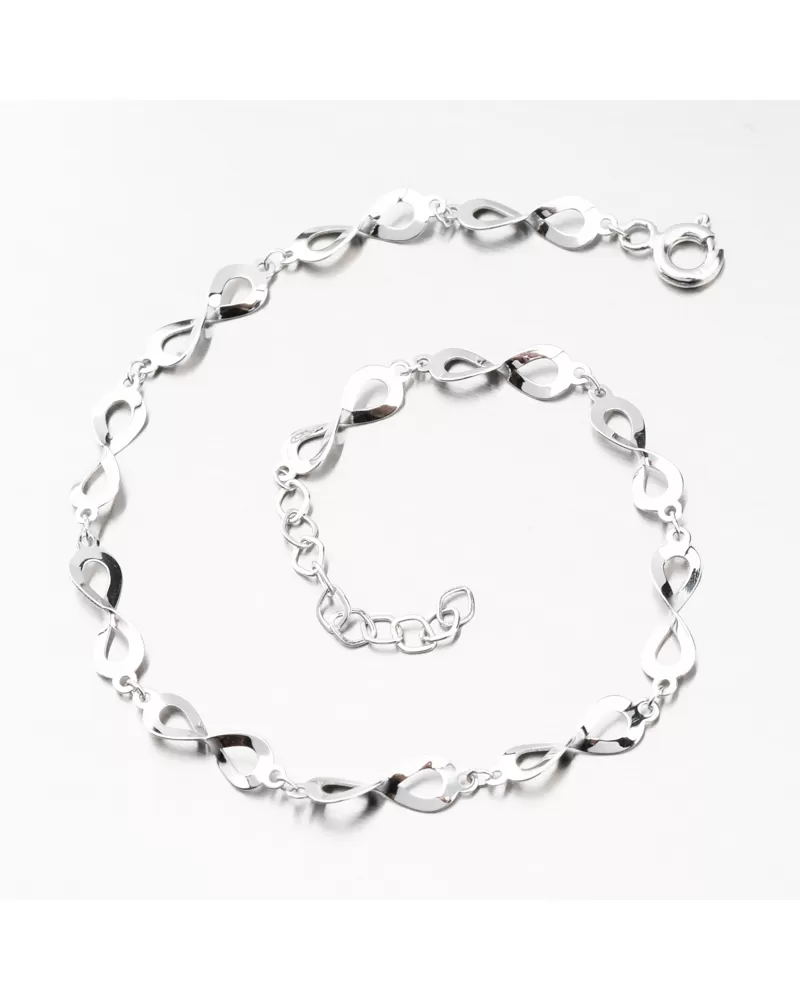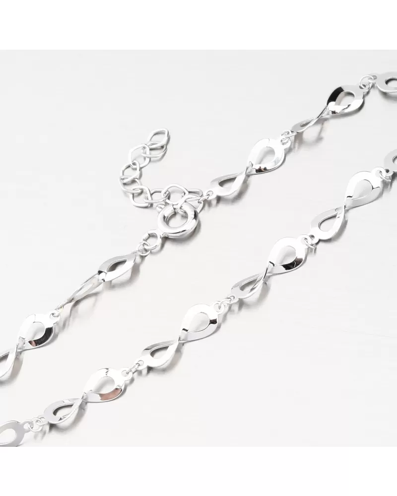 Elegantní zlatý náramek, který zaujme svým zpracováním. Náramek je tvořen symboly ve tvaru nekonečna, které jsou ale jemně zakroucené a tím je výsledný efekt velmi originální a o to celkově zajímavější.