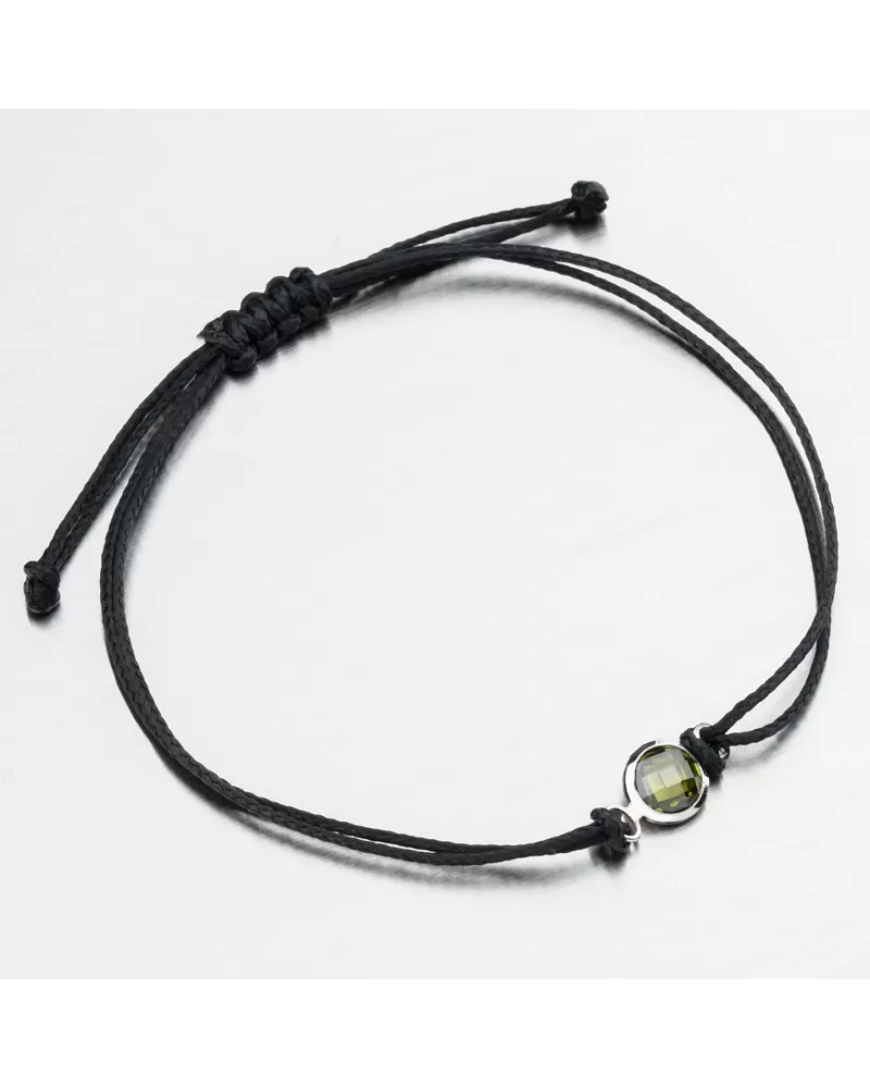 Objevte šňůrkový náramek se zlatým přívěskem – ručně vyráběný šperk, který spojuje styl, symboliku a luxus v jednom. Velmi oblíbený typ provázkového náramku, který má výhodu ve své univerzální velikosti a oblíbené černo-bílé kombinaci barev. Náramek je tvořen z černého dvojitého provázku, který je ozdoben přívěskem v samotném středu z bílého zlata. Středový přívěsek zdobí precizně broušený zirkon v zelené barvě, který se při každém pohybu nádherně rozzáří a dodává náramku jiskru pravého luxusu.