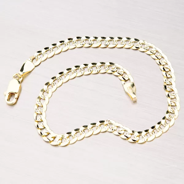 Slušivý náramek s gravírovanými ploškami je vyrobený ze žlutého čtrnáctikarátového zlata 585/000 v lesklé povrchové úpravě. Náramek má zapínání na pérový kroužek. Povrch je leštěn do vysokého lesku. Navíc je náramek zdoben...