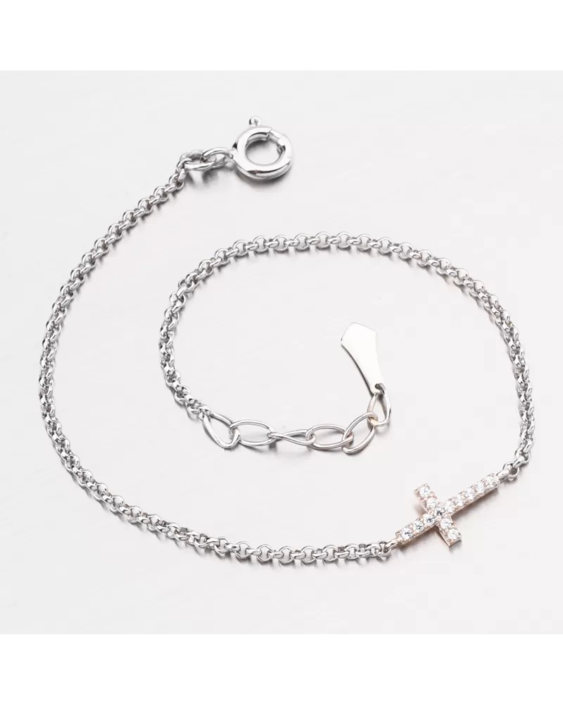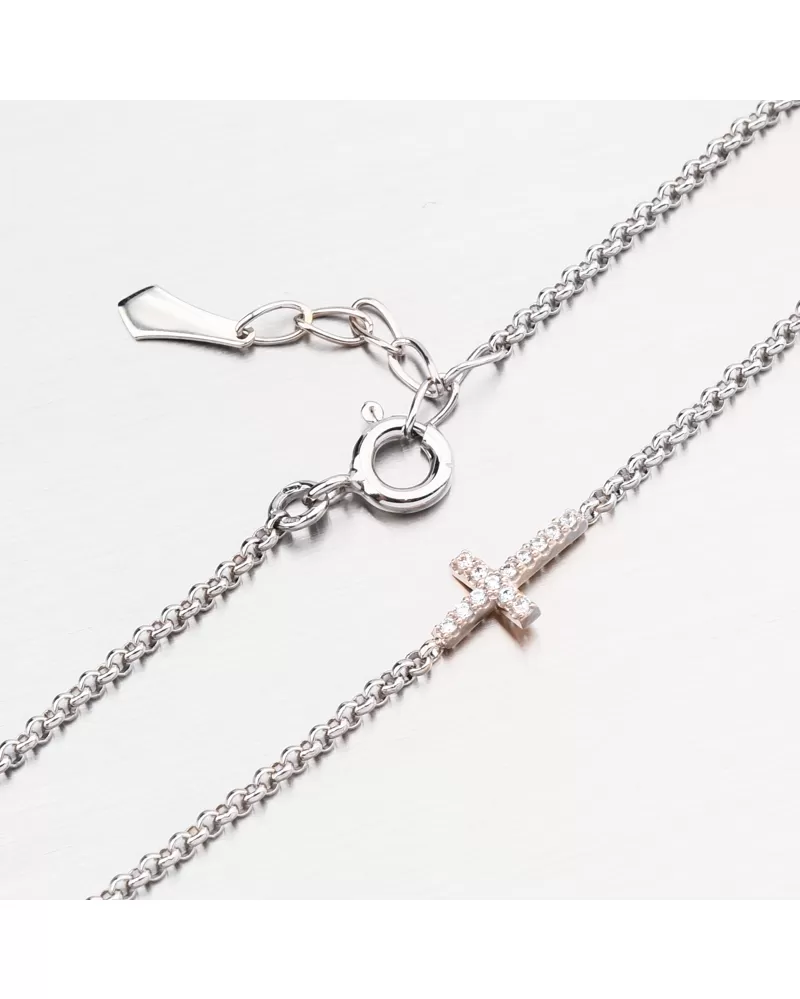 Krásný zlatý náramek je tvořen řetízkem typu Anker a decentním přívěskem ve tvaru křížku, který je v růžové barvě zlata. Křížek je precizně osazen zirkony v briliantovém brusu. Briliantový brus dodává zirkonům třpyt pravých diamantů. Náramek je velmi příjemný a tím vhodný pro každodenní nošení.
