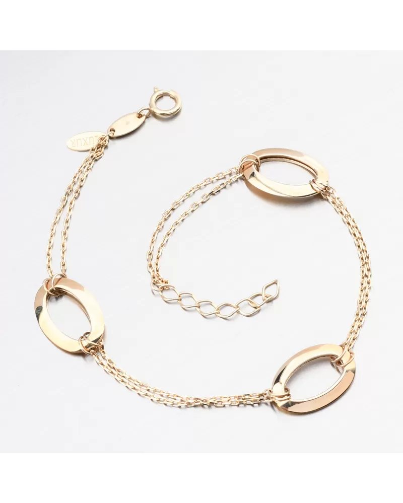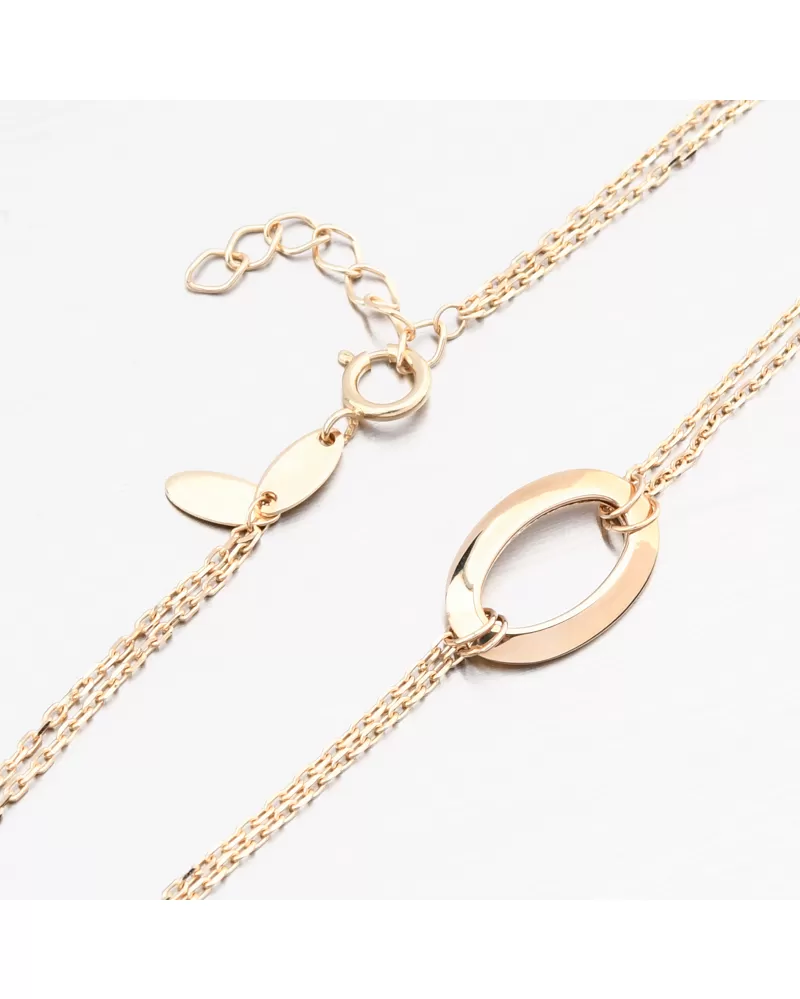 Jemný a elegantní zlatý náramek stvořený pro události, kde potřebujete doplnit váš outfit s jemným šperkem. Náramek je tvořený dvojitým řetízkem typu anker a ten je ozdoben zlatými oválky.
