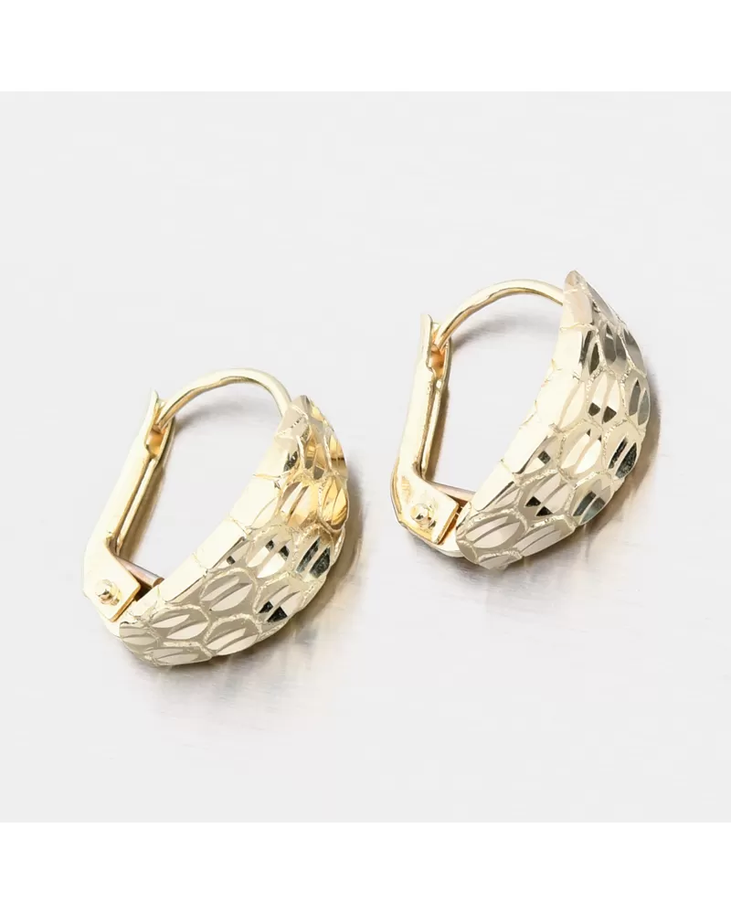 Náušnice jsou vyrobeny ze žlutého čtrnáctikarátového zlata 585/1000 v lesklé povrchové úpravě. Tento šperk byl zkontrolován puncovním úřadem, který ověřil jeho kvalitu a označil státním puncem pro danou ryzost.