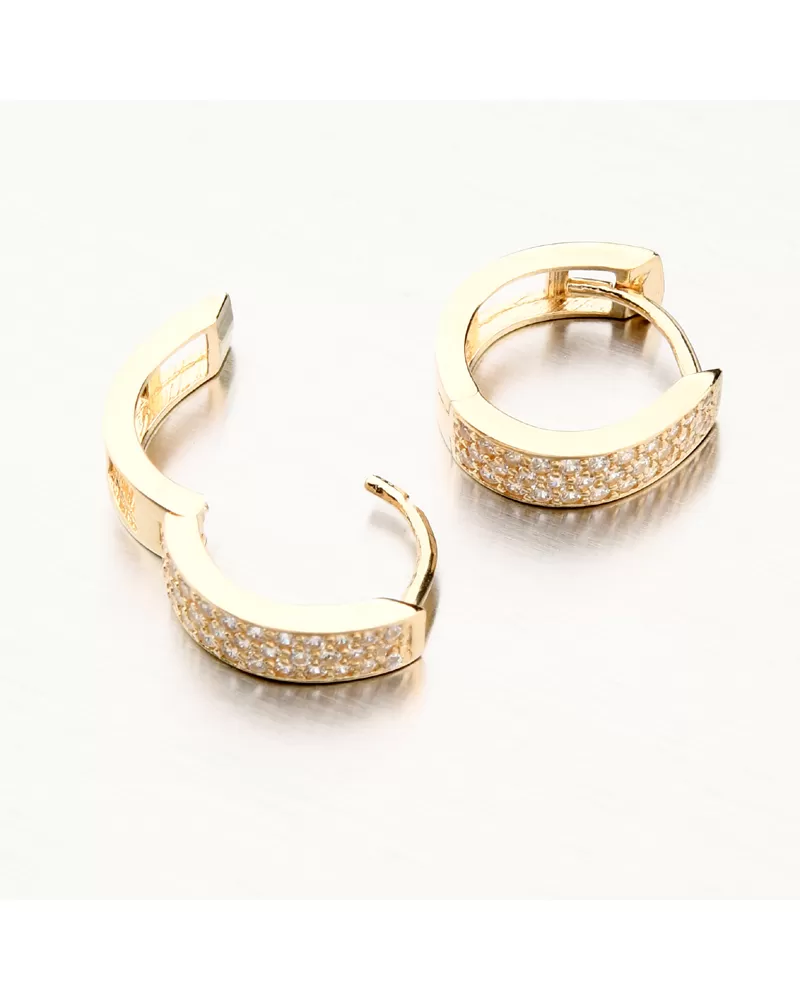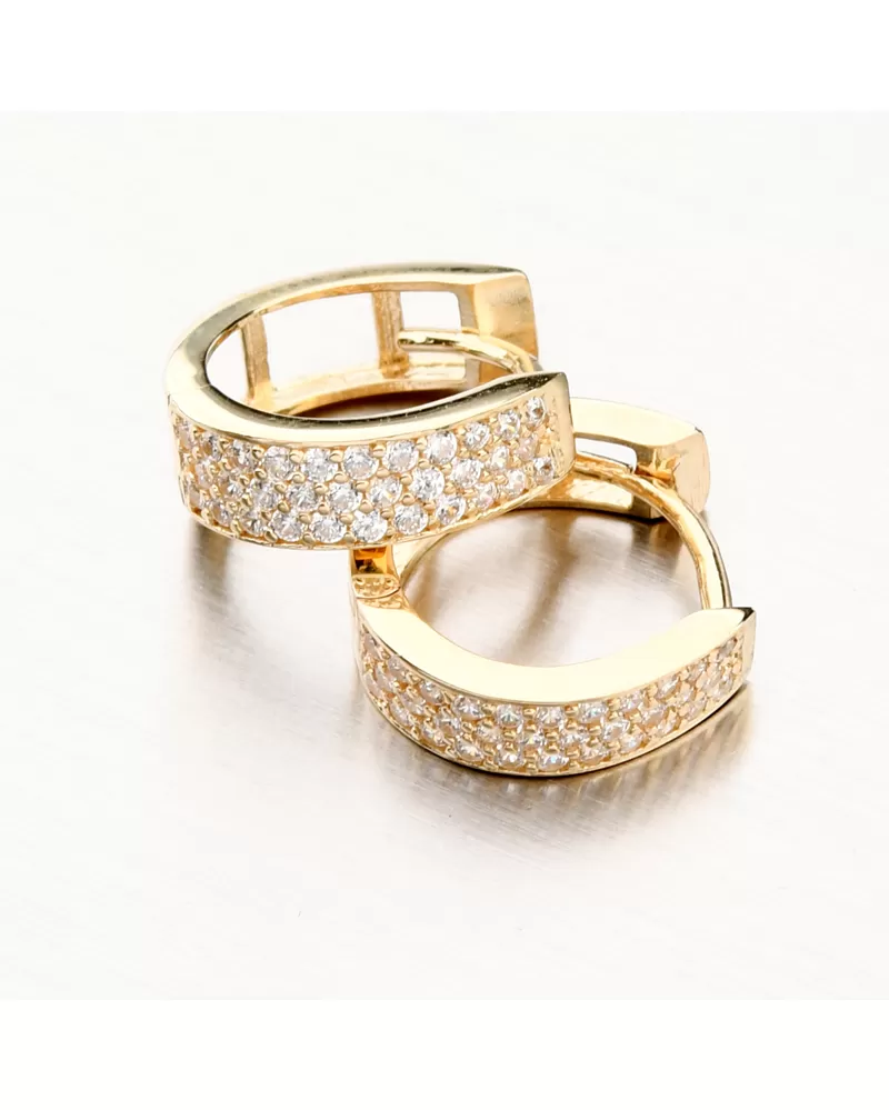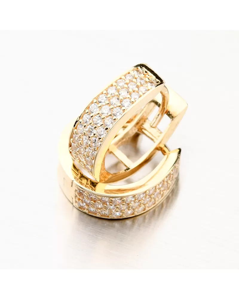 Romantické náušnice kroužky s pevnou konstrukcí si zamilujete. Kroužky jsou velice praktické a velmi pohodlné a to je přesně to, co potřebujete. Tento model zdobí přední strana precizně osazená ve třech řadách bílými zirkony v briliantovém brusu. Tento brus zajišťuje maximální brilanci vybroušených facet, dokonale odráží světlo a neuvěřitelně září z každého úhlu pohledu.