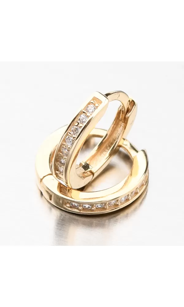 Něžné náušnice kroužky s pevnou konstrukcí si zamilujete vy i vaše malá parádnice. Kroužky jsou velice praktické a velmi pohodlné a to je přesně to co potřebujete. Tento model zdobí přední strana precizně osázená zirkony v briliantovém brusu. Zirkony jsou v bílé barvě. Zadní strana je hladká a pokud vaší princeznu zirkony omrzí dají se kroužky nosit i zadní stranou dopředu.