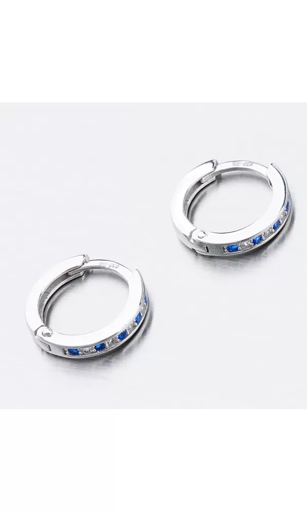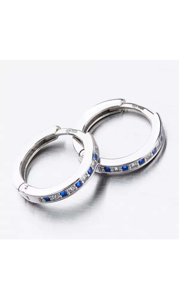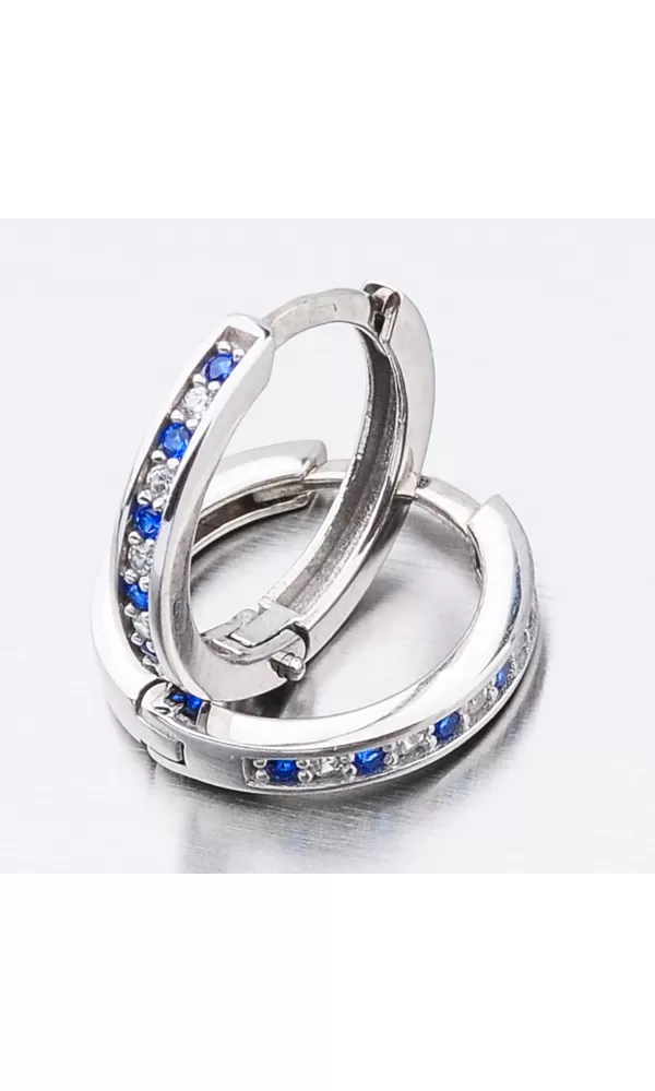 Něžné náušnice kroužky s pevnou konstrukcí si zamilujete vy i vaše malá parádnice. Kroužky jsou velice praktické a velmi pohodlné a to je přesně to co potřebujete. Tento model zdobí přední strana precizně osázená zirkony v briliantovém brusu. Zirkony se pravidelně střídají ve dvou barevných kombinací a to v bílé a modré barvě. Zadní strana je hladká a pokud vaší princeznu zirkony omrzí dají se kroužky nosit i zadní stranou dopředu.