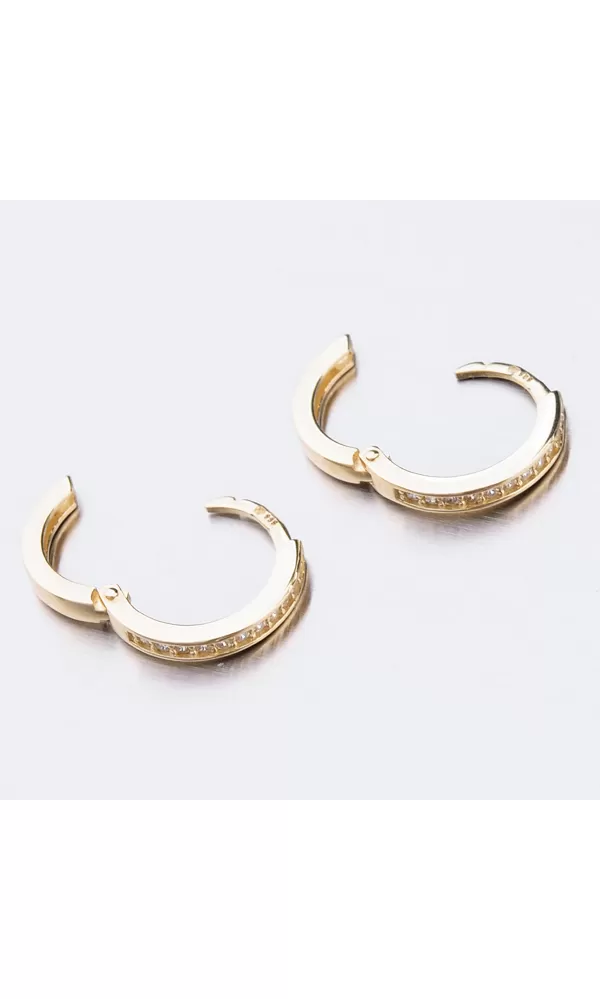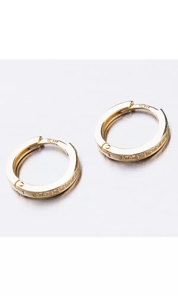Něžné náušnice kroužky s pevnou konstrukcí si zamilujete vy i vaše malá parádnice. Kroužky jsou velice praktické a velmi pohodlné a to je přesně to co potřebujete. Tento model zdobí přední strana precizně osázená zirkony v briliantovém brusu. Zirkony jsou v bílé barvě. Zadní strana je hladká a pokud vaší princeznu zirkony omrzí dají se kroužky nosit i zadní stranou dopředu.