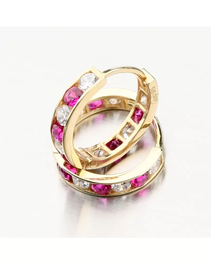 Něžné náušnice kroužky s pevnou konstrukcí si zamilujete Vy i Vaše malá parádnice. Kroužky jsou velice praktické a velmi pohodlné a to je přesně to, co potřebujete. Tento model zdobí přední strana precizně osazená červenými a bílými zirkony v briliantovém brusu. Tento brus zajišťuje maximální brilanci vybroušených facet, dokonale odráží světlo a neuvěřitelně září z každého úhlu pohledu.