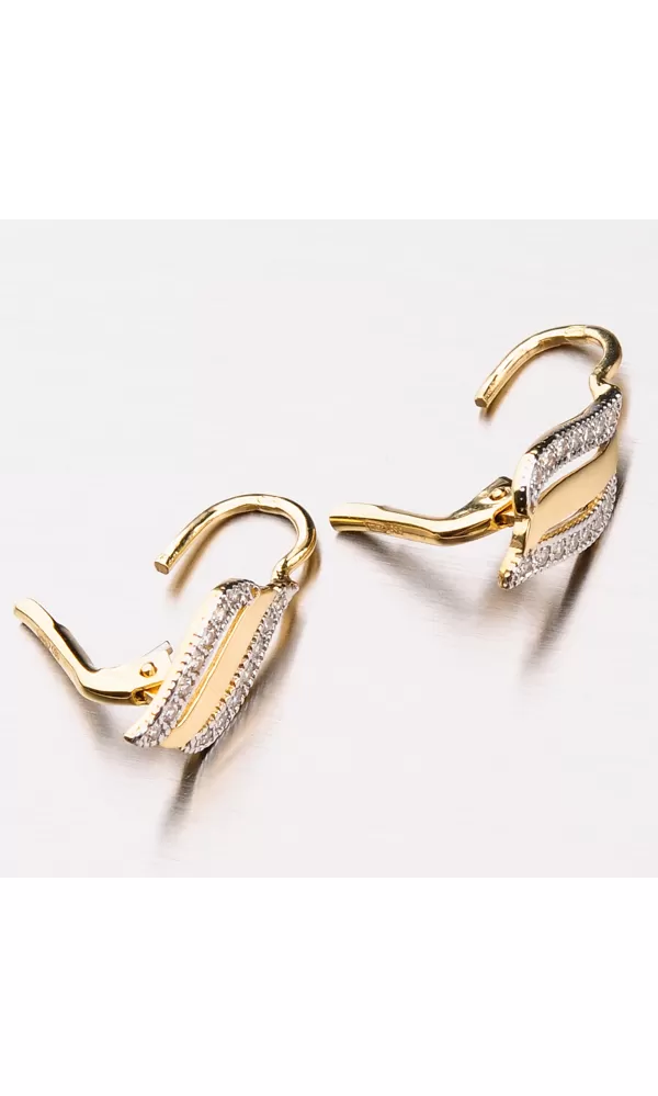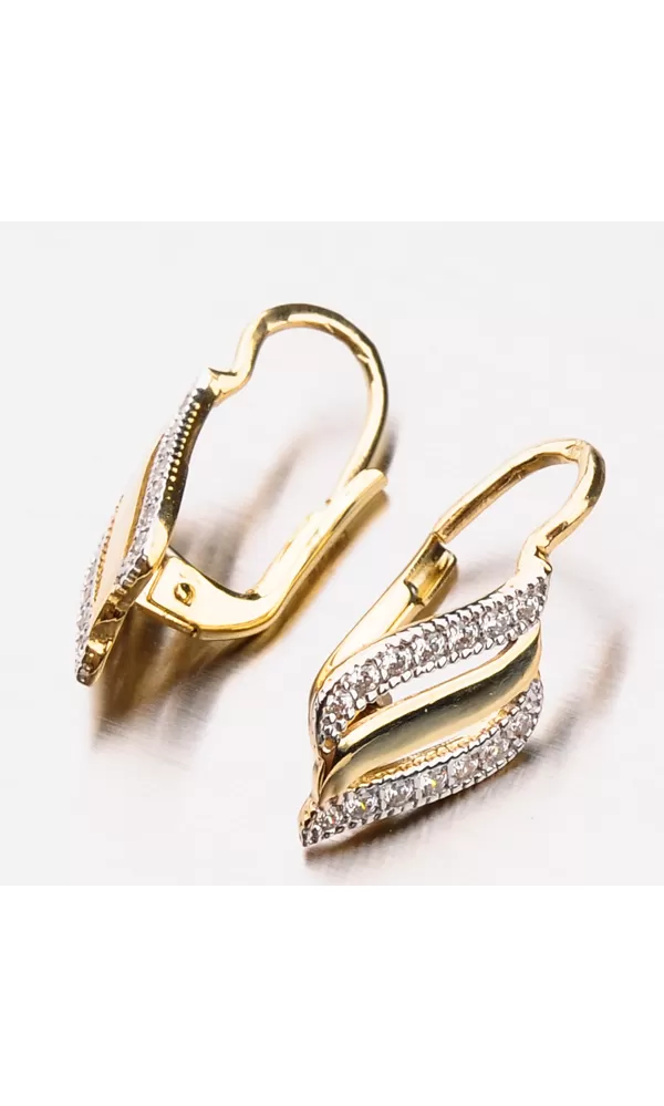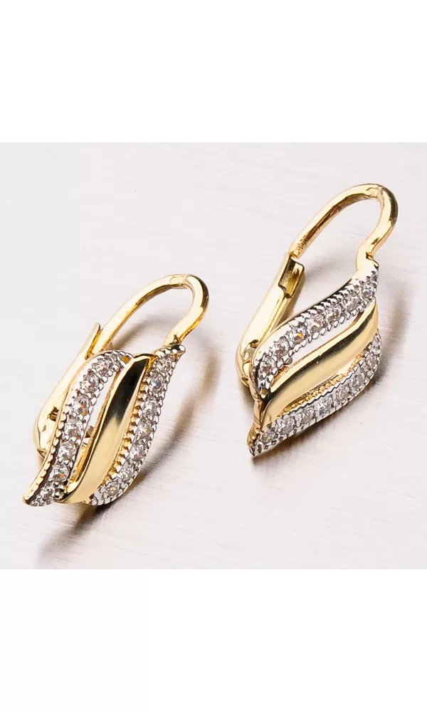 Bohatě zdobené náušnice vás budou zdobit na každém vašem kroku. Jsou nepřehlédnutelné díky zářivým zirkonům v briliantovém brusu. Dámské náušnice jsou vyrobeny ze žlutého čtrnáctikarátového zlata 585/1000 v lesklé povrchové úpravě s klasickým zapínáním na klapky.