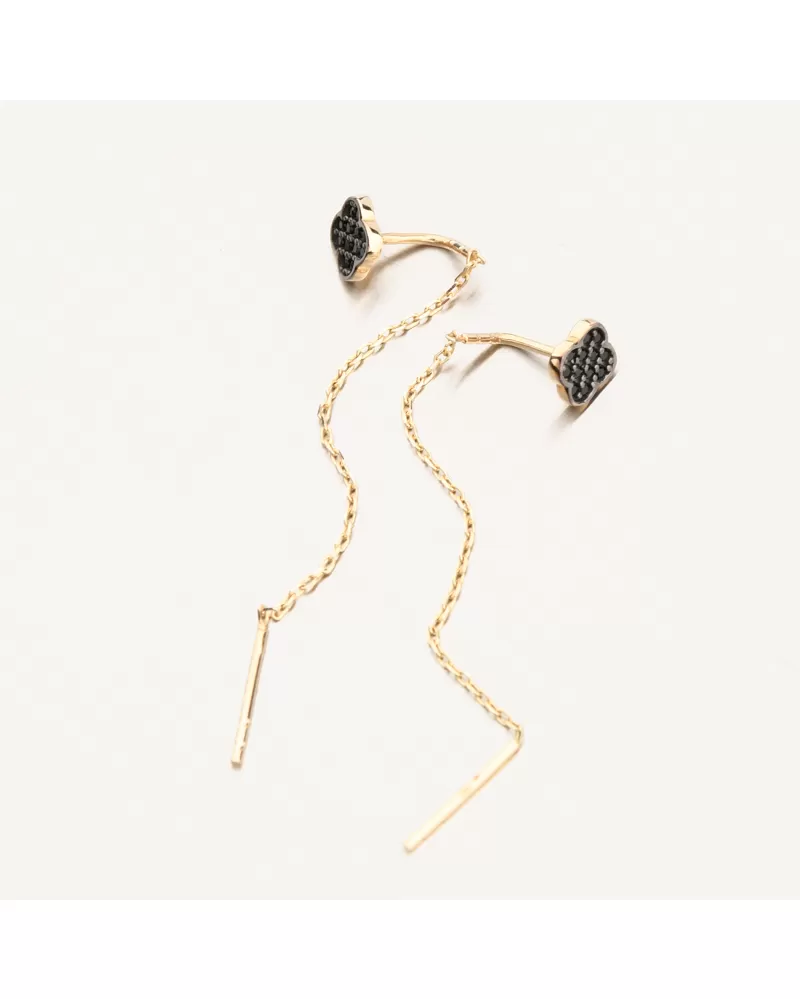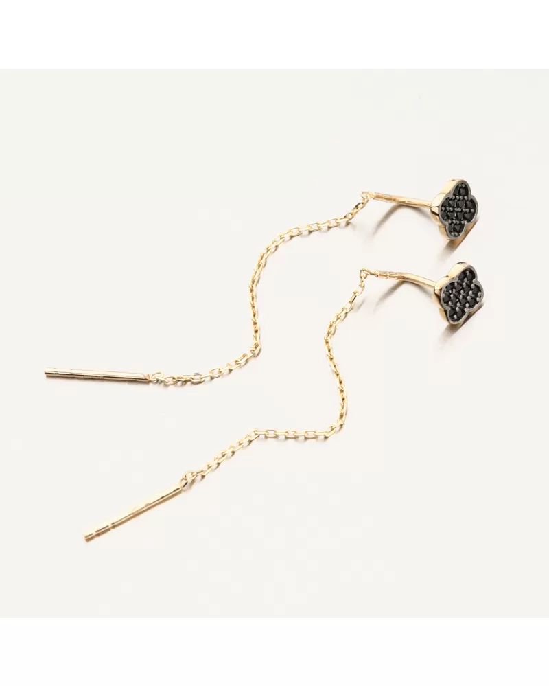 Objevte jemnou eleganci v podobě těchto výjimečných zlatých náušnic. Kombinují minimalistický design s výrazným detailem – drobný černý květinový motiv osazený lesklými černými kamínky dodává šperkům moderní a zároveň nadčasový vzhled. Dlouhý řetízkový závěs vytváří při nošení krásný pohyb a nenápadně prodlužuje linii krku. Náušnice jsou lehké a pohodlné, ideální pro celodenní nošení i speciální příležitosti.