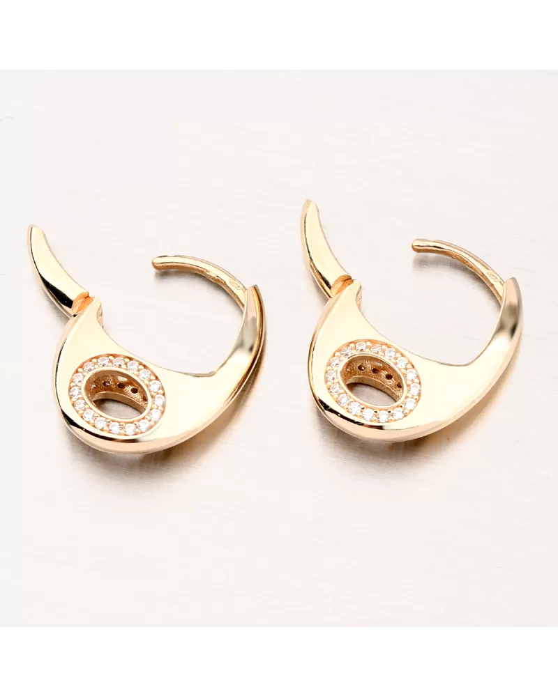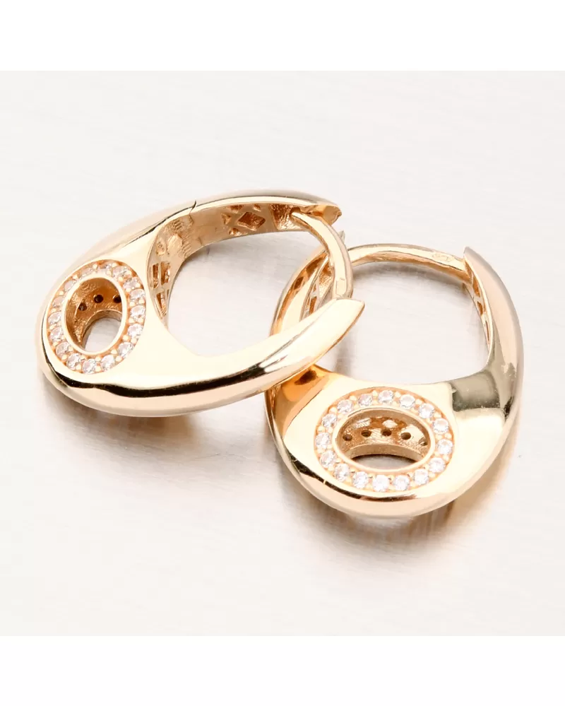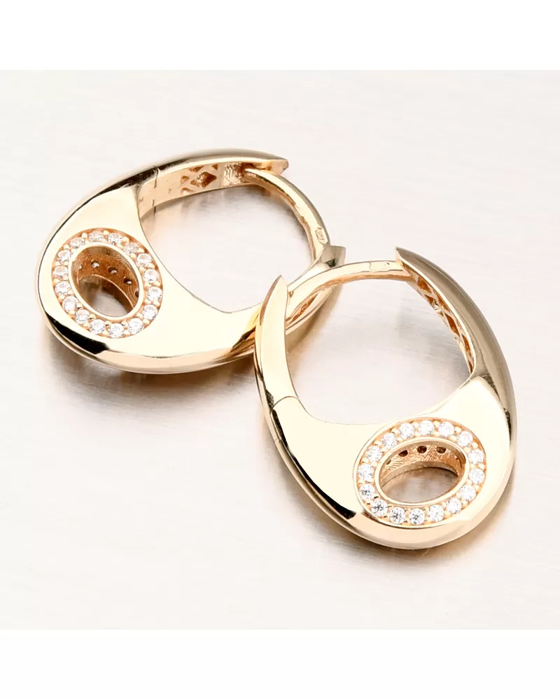 Tyto elegantní zlaté náušnice zaujmou svým moderním, hladkým designem a jemným třpytem drobných kamínků, které zdobí výrazný oválný prvek. Působí luxusně, originálně a dodají vašemu stylu sofistikovaný dotek bez zbytečné okázalosti. Perfektní volba pro ženy, které milují nadčasovou eleganci s neobvyklým nádechem. Zirkony jsou briliantového brusu, který zajišťuje maximální brilanci vybroušených facet, dokonale odráží světlo a neuvěřitelně září z každého úhlu pohledu.