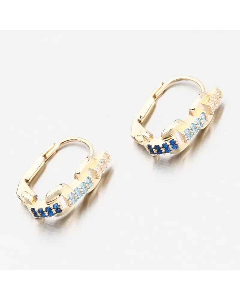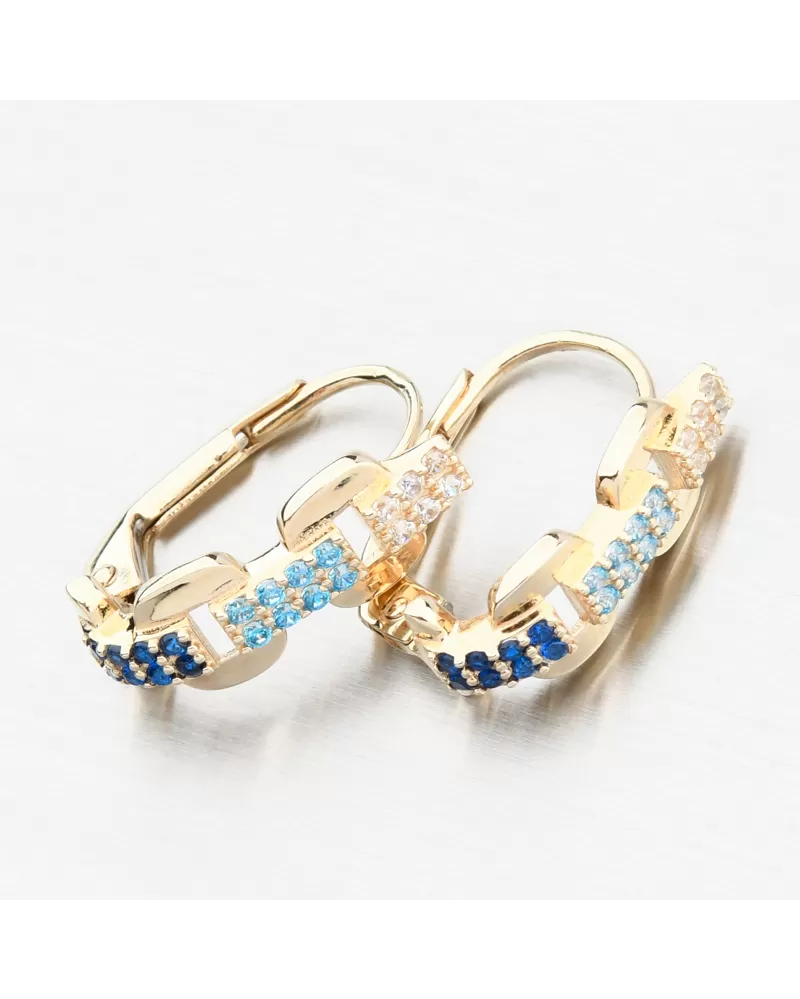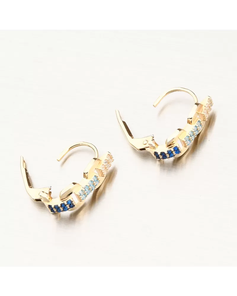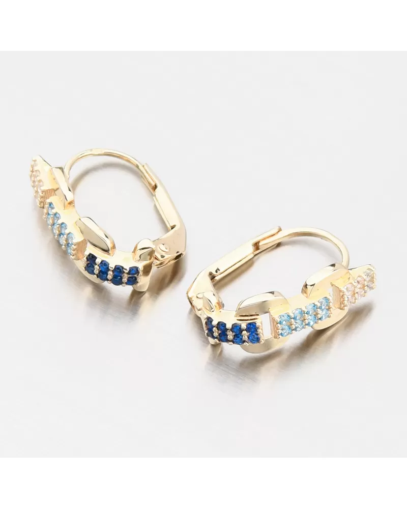 Tyto zlaté náušnice jsou nádherným spojením hravých pastelových odstínů a nadčasové elegance. V linii drobných zirkonů se prolínají bílé, světlé modré a tmavě modré tóny, které dodávají šperku rafinovanou ženskost. Zirkony jsou briliantového brusu, který zajišťuje maximální brilanci vybroušených facet, dokonale odráží světlo a neuvěřitelně září z každého úhlu pohledu. Díky preciznímu zpracování a bezpečnému zapínání působí náušnice luxusně, ale přitom lehce a subtilně - ideální pro každodenní nošení i zvláštní příležitosti.