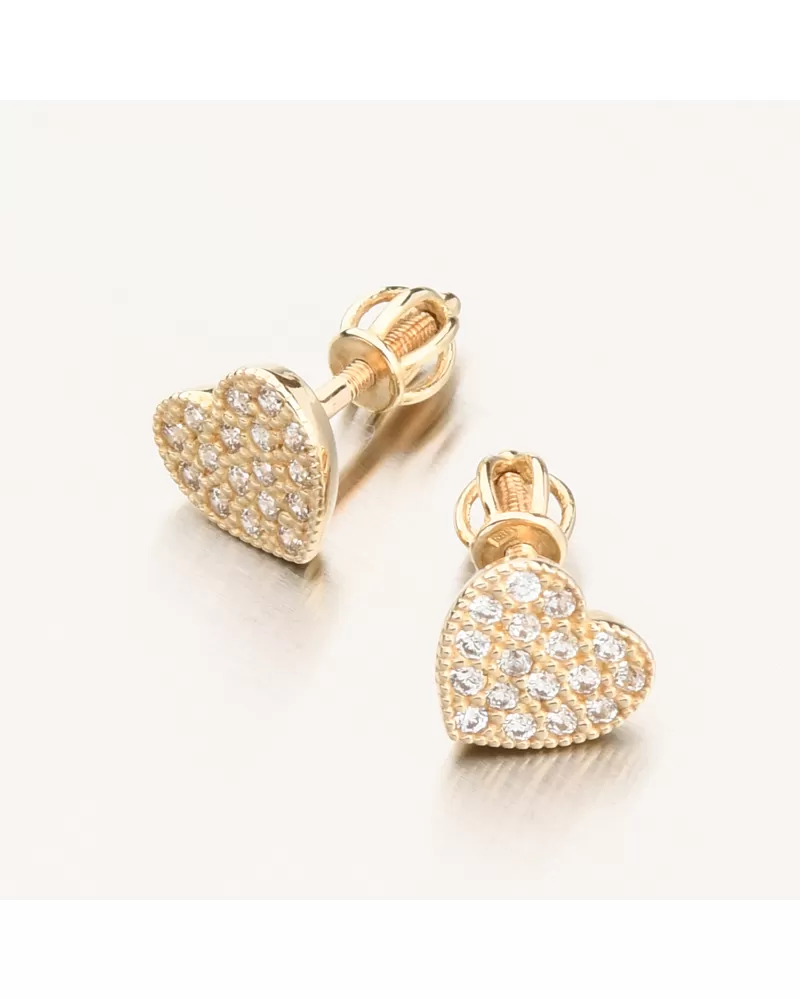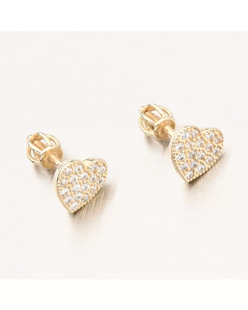Dámské náušnice žluté zlato 585 srdce se zirkony 663P-120440