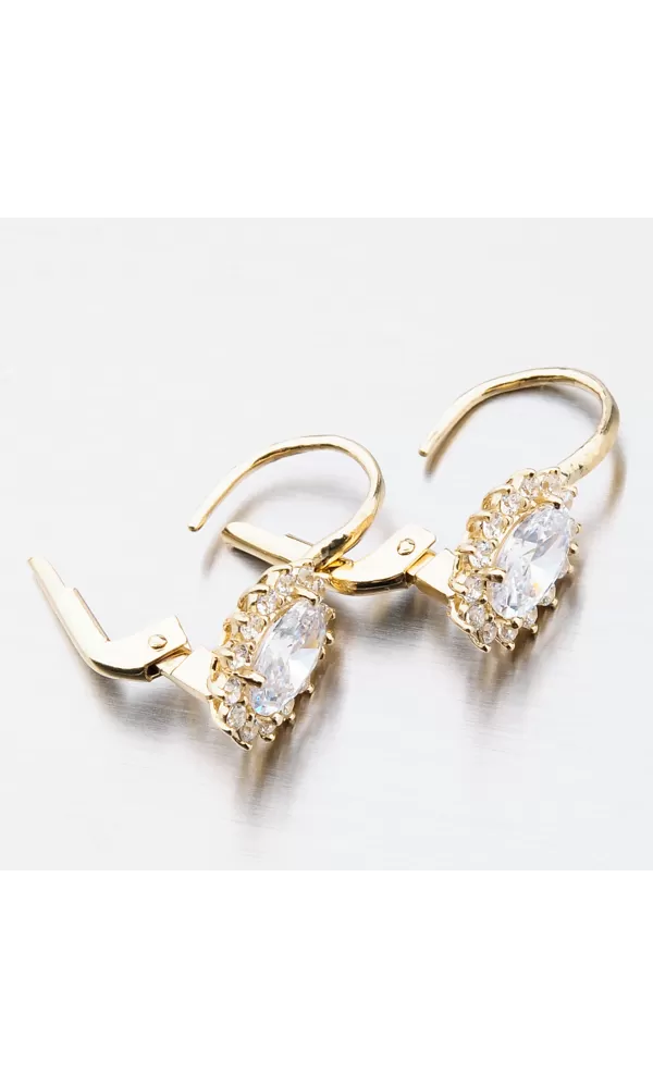 Rozšiřte svou šperkovnici o další zářivý šperk. Tyto náušnice vás oslní dokonalou září zirkonů. Náušnice jsou tvořeny velkým zirkonem vsazeným uprostřed, který je broušen do oválného tvaru. Kolem tohoto oválného zirkony jsou vsazeny menší neméně zářivé zirkony. Snad každá ženy miluje zářivé šperky a tyto náušnice opravdu zářivé jsou. Proto neváhejte a pořiďte si tento šperk.