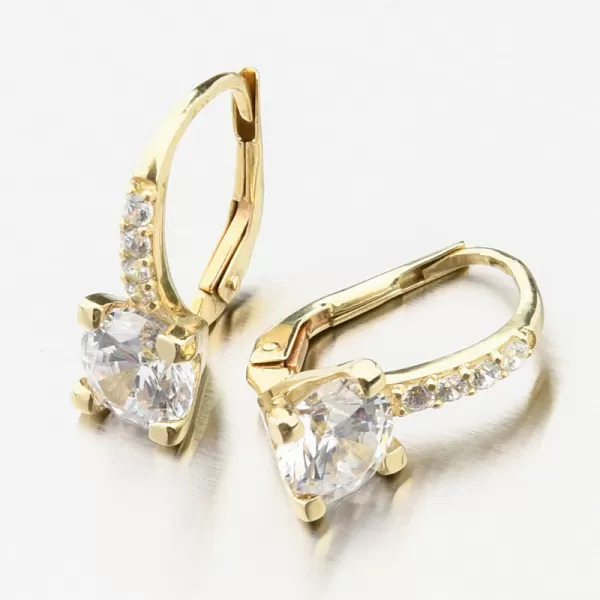 Zářivé dámské náušnice klasického designu patří mezi nejoblíbenější model mezi ženami. Pevnou konstrukci náušnic zdobí dominantní zirkon v briliantovém brusu, který je pečlivě fasován do korunky a uchycen čtyřmi krapnami. Dále náušnice doplňují menší zirkony, které zdobí část na hlavním zirkonem. Tyto zirkony jsou také broušeny do briliantového brusu. Briliantový brus zajišťuje maximální brilanci vybroušených facet, dokonale odráží světlo a neuvěřitelně září z každého úhlu pohledu. Šperk má pevnější konstrukci, která plně vyváží vyšší cenu a prsten vám vydrží déle než podobné levnější modely.