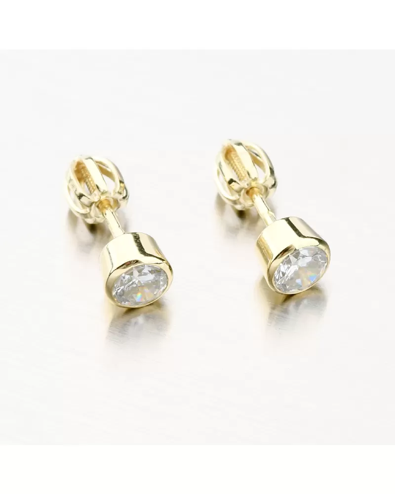 Jednoduché a decentní zlaté náušnice pecky. Náušnice zdobí třpytivý zirkon o velikosti 5 mm. Zirkon je briliantového brusu, který zajišťuje maximální brilanci vybroušených facet, dokonale odráží světlo a neuvěřitelně září z každého úhlu pohledu.