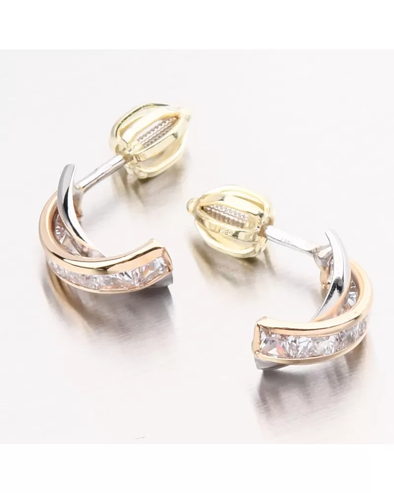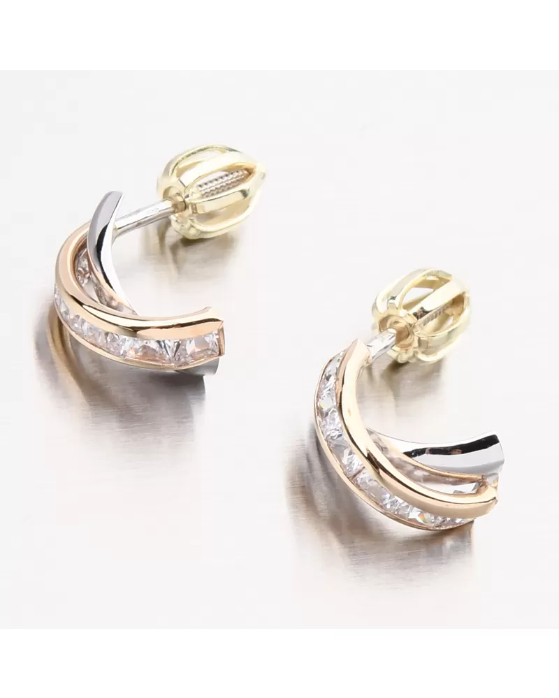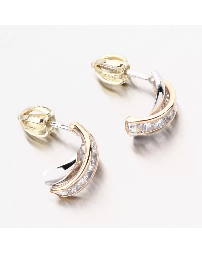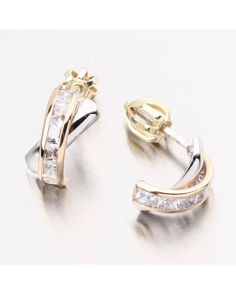 Ráda nosíte pecky, ale chcete výraznou změnu? Tyto náušnice Vás nadchnou svým zpracováním. Ozdoba náušnic je překříženého tvaru, z toho jedna linie je v bílé barvě zlata ve vysokém lesku a druhá linie je ve žluté barvě zlata osazená zářivými zirkony hranatého tvaru.