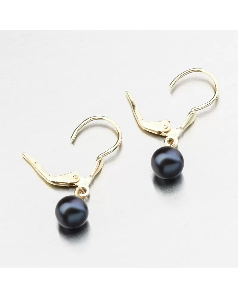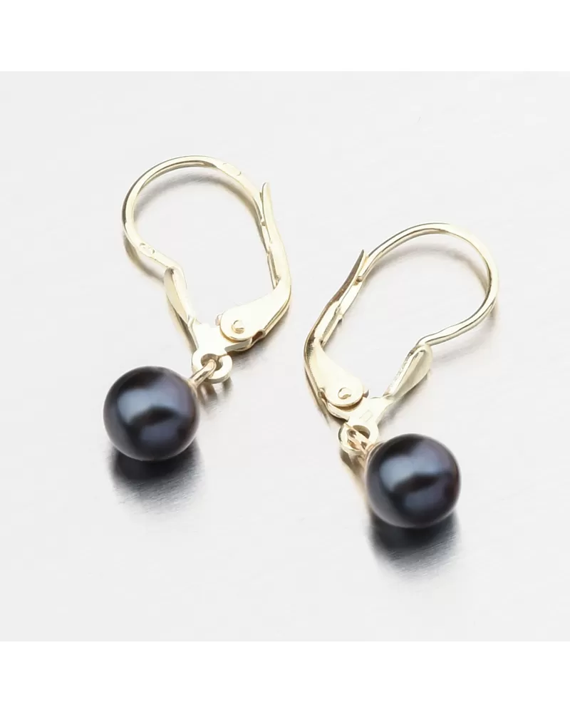 Jednoduché, přesto okouzlující. Tyto náušnice ze žlutého zlata zdobí syntetické černé perly. Černá perla v elegantním odstínu antracitového lesku hraje pod světlem jemnými odlesky šedé a modré, které dodávají šperku hloubku a noblesu. Dokonale kontrastují se zlatem, čímž vytvářejí harmonii elegance a originality. Černé perly jsou symbolem síly, nezávislosti a ženského sebevědomí. Náušnice mají upevněnou perlu na kroužku a ta se jemně pohybuje. Perla je černé barvy a je syntetická. Perly jsou všeobecně symbolem krásy a luxusu, ale také štěstí a úspěchu a spokojenosti. Dopřejte si tento šperk, který nesmí chybět ve Vaší šperkovnici.