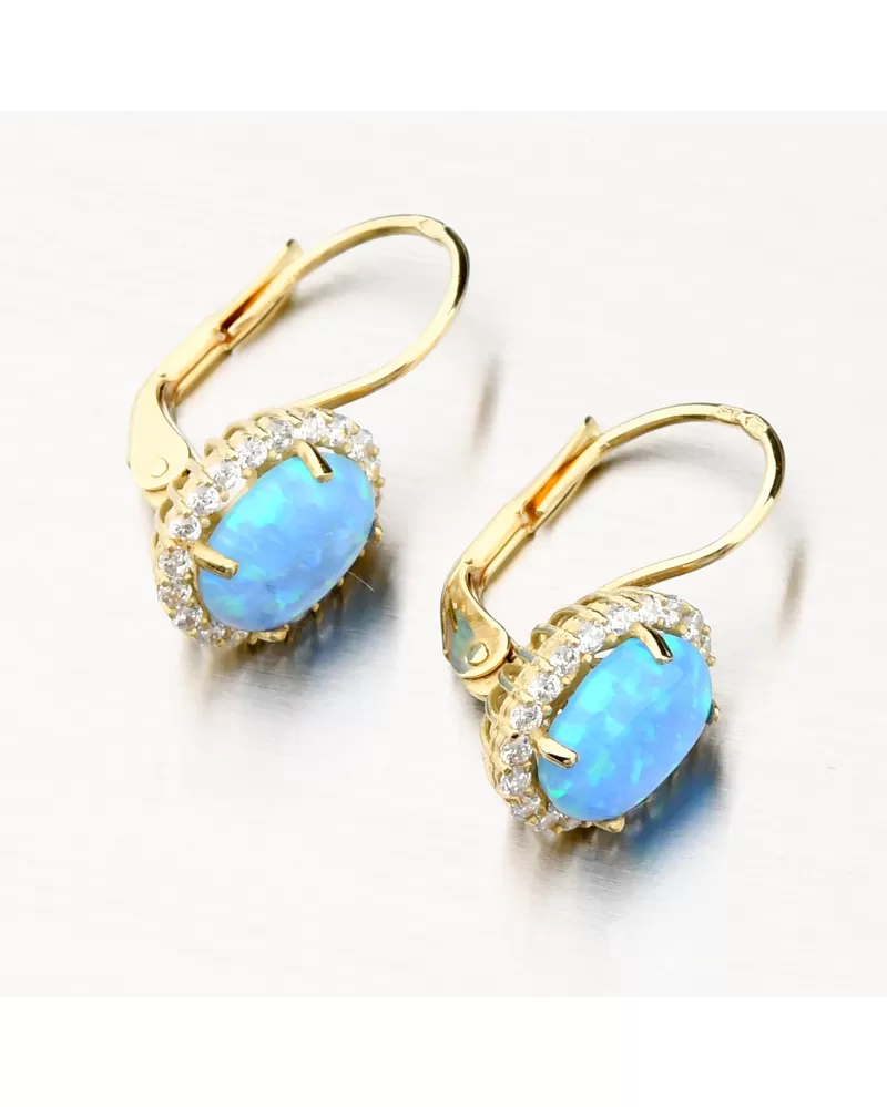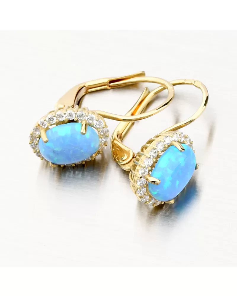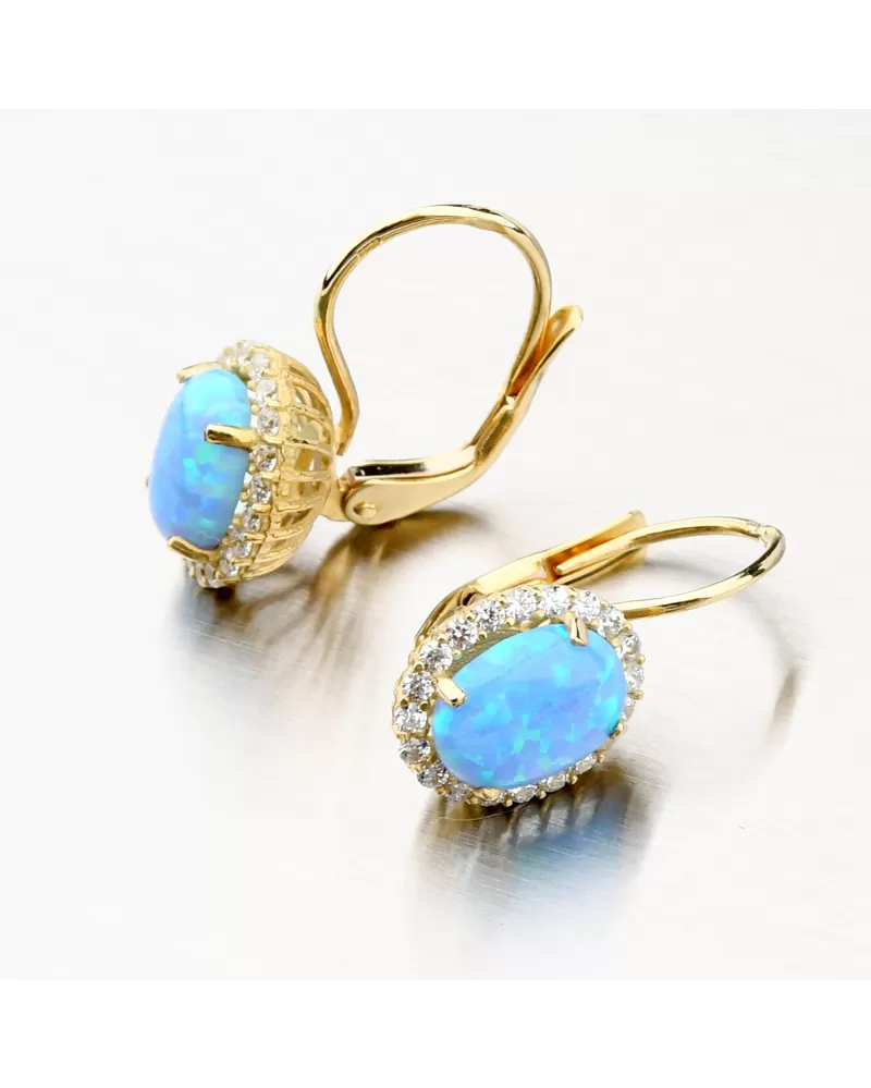 Zlaté náušnice s modrým opálem a se zirkony 523P-120510-02