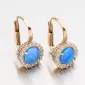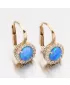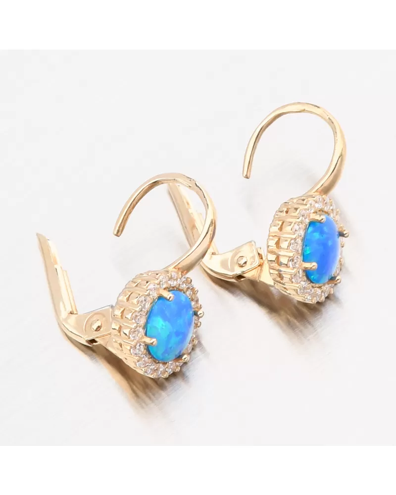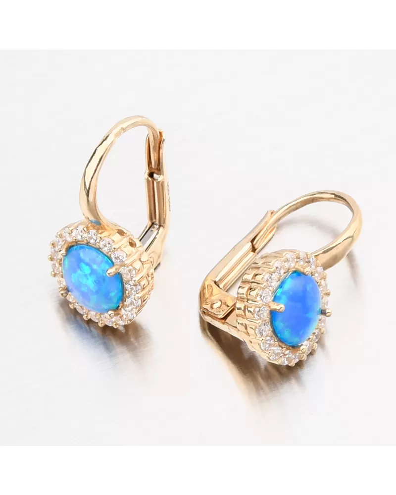 Tyto náušnice vás nadchnou. Na první pohled Vás zaujme kulatý modrý syntetický opál, který svými odstíny odzbrojí každou ženu. Kolem opálu jsou vsazeny třpytivé bílé zirkony briliantového brusu. Tento brus propůjčuje kamenům brilanci pravých diamantů.