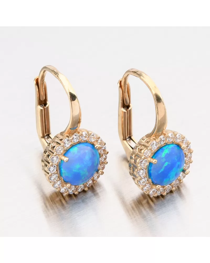 Zlaté náušnice s opálem a se zirkony 12R-745