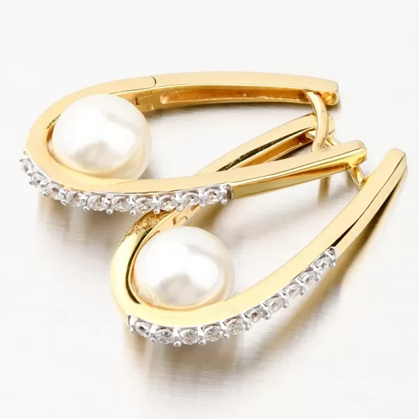 Luxusní zlaté náušnice, které jen tak nikde na nikom neuvidíte! Náušnice jsou oválného tvaru, kde od poloviny přední části do spodní části uvidíte nádherné třpytivé zirkony briliantového brusu. Tento brus zajišťuje maximální brilanci vybroušených facet, dokonale odráží světlo a neuvěřitelně září z každého úhlu pohledu. V dolním oblouku je usazena bílá uměla perla. Perly jsou symbolem krásy a luxusu, ale také štěstí a úspěchu a spokojenosti. Dopřejte si tento šperk, který nesmí chybět ve Vaší šperkovnici.