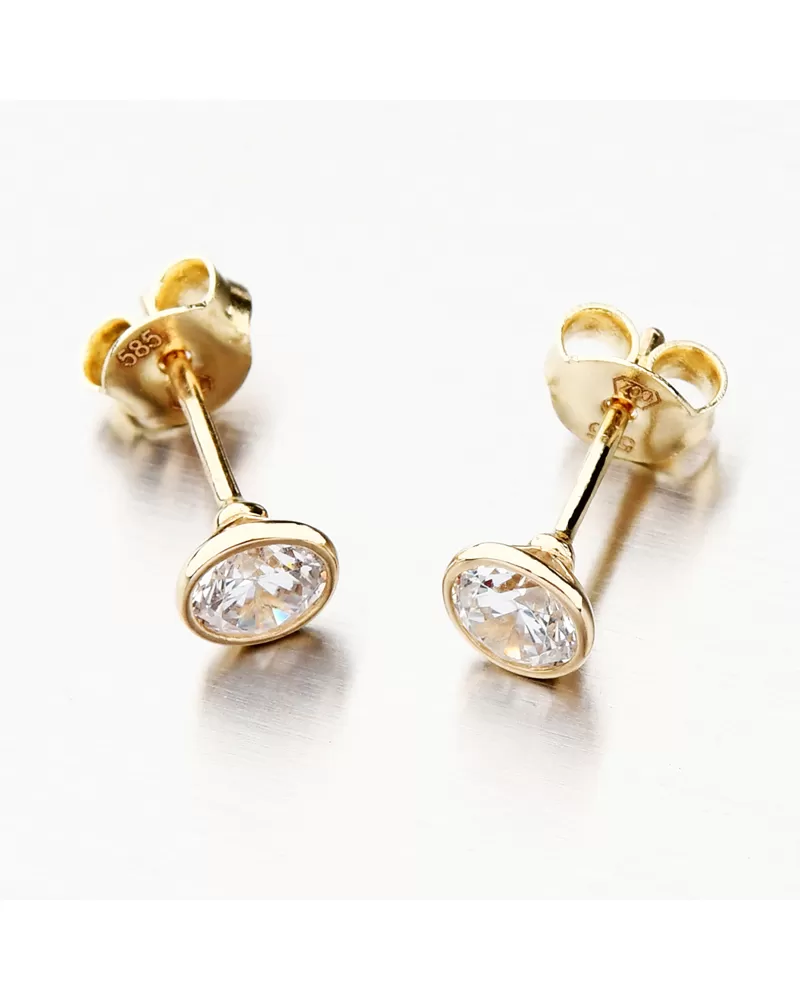 Zářivé náušnice pecky v kulatém tvaru Vám rozzáří ucho prvotřídním zirkonem v briliantovém brusu. Náušnice jsou vyrobené ze žlutého čtrnáctikarátového zlata 585/1000 v lesklé povrchové úpravě. Náušnice se zapínají na puzety.